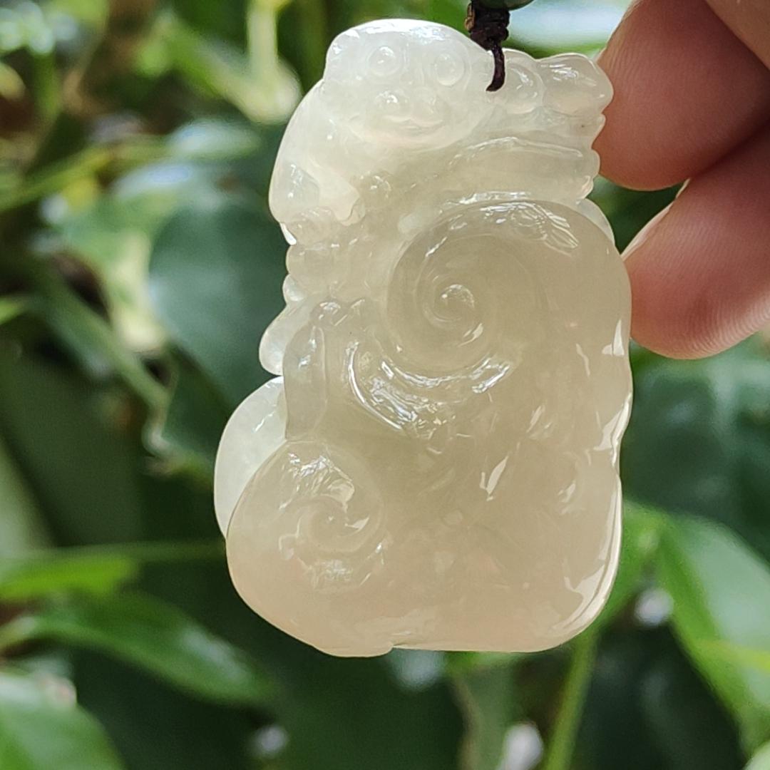 Descubra la elegancia de nuestro colgante Ruyi con dinero, bellamente elaborado con jadeíta natural tipo A de alta calidad.