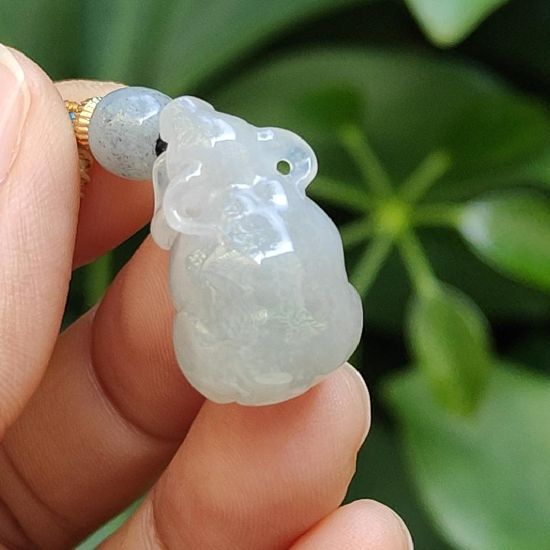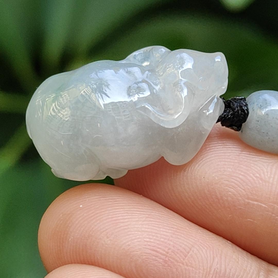 Este collar colgante de vaca pequeña es una pieza impresionante elaborada con jadeíta natural tipo A de calidad translúcida semihelada.