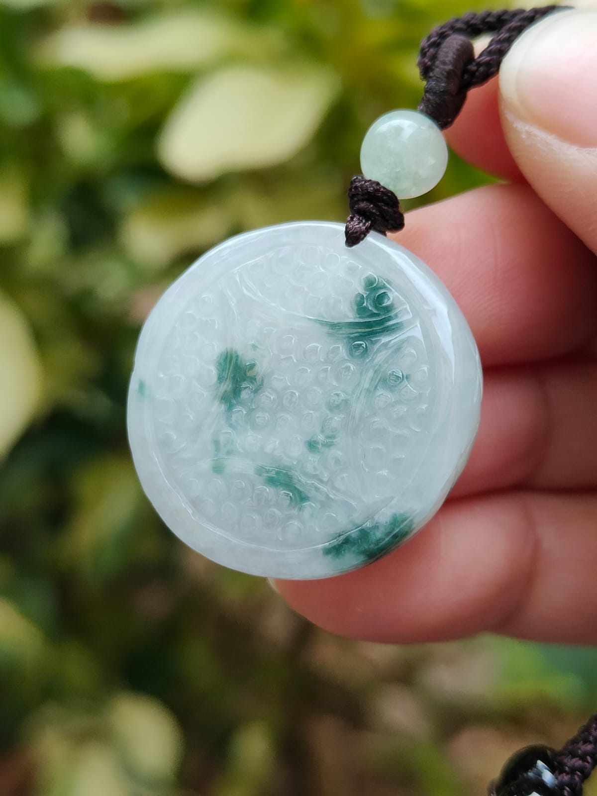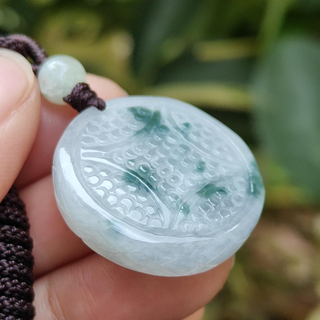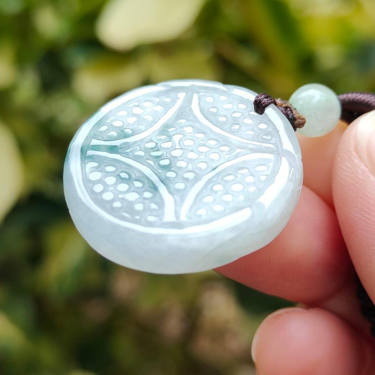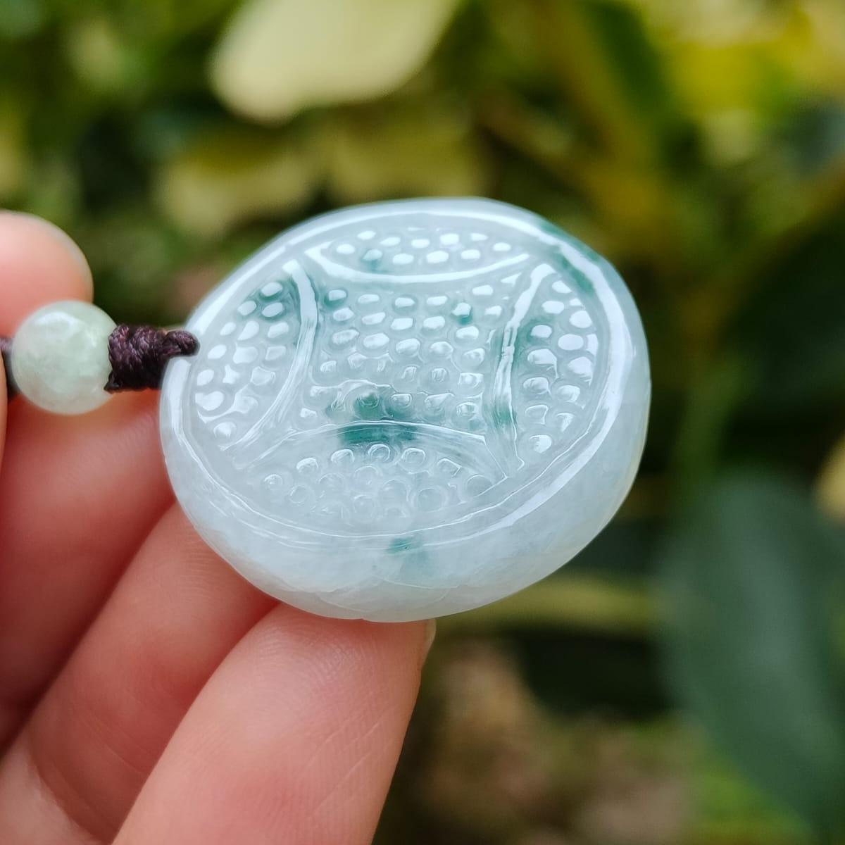 Kalung indah ini dilengkapi liontin koin yang dibuat dari Batu Giok Jadeite Tipe A Alami, beratnya 10,22 gram dan berukuran 26,8 * 26,4 * 6,5 (pendant362).