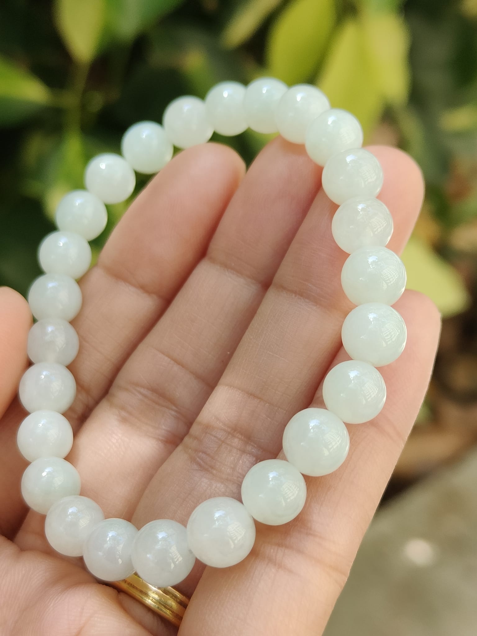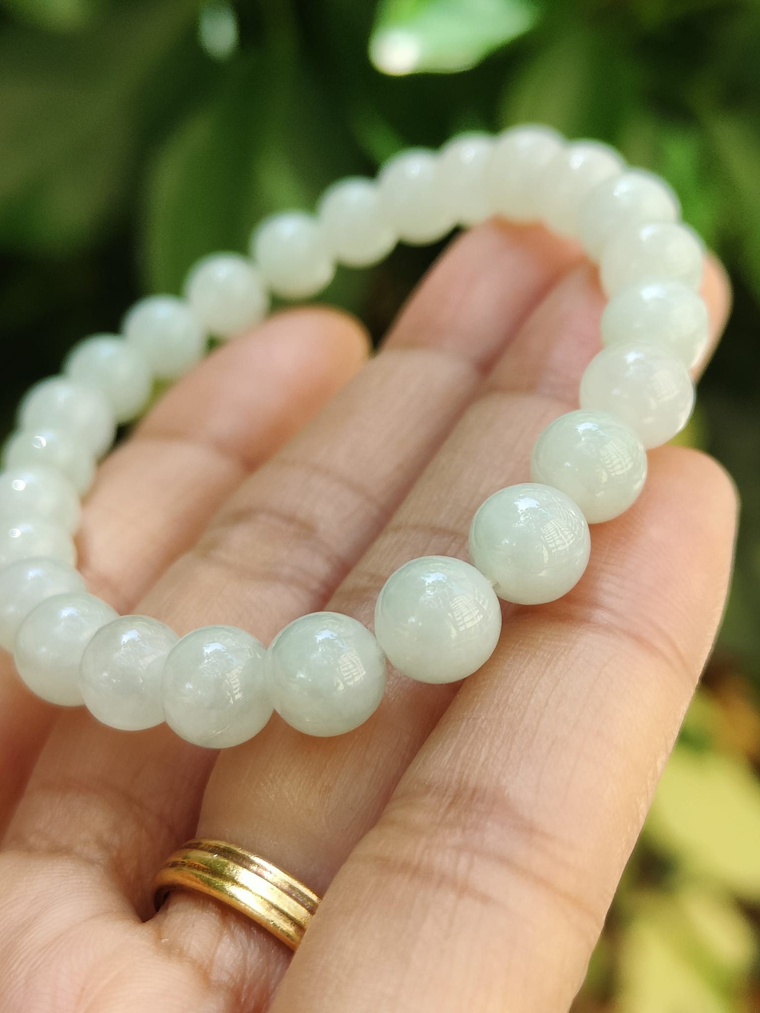 🚀Near White Jadeite Bead Bracelet – 25 Natural Type A Beads🚀, 7.3mm, 90% Perfection, Symbol of Purity & Renewal
