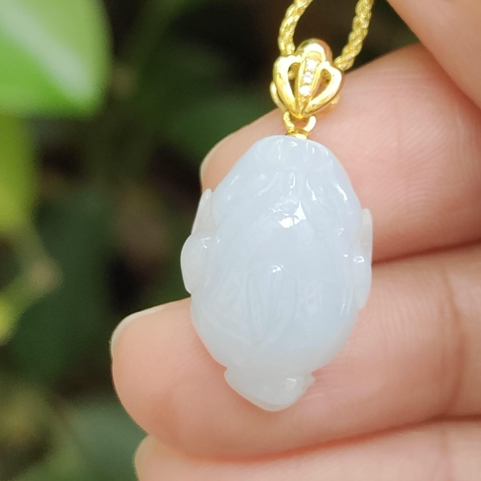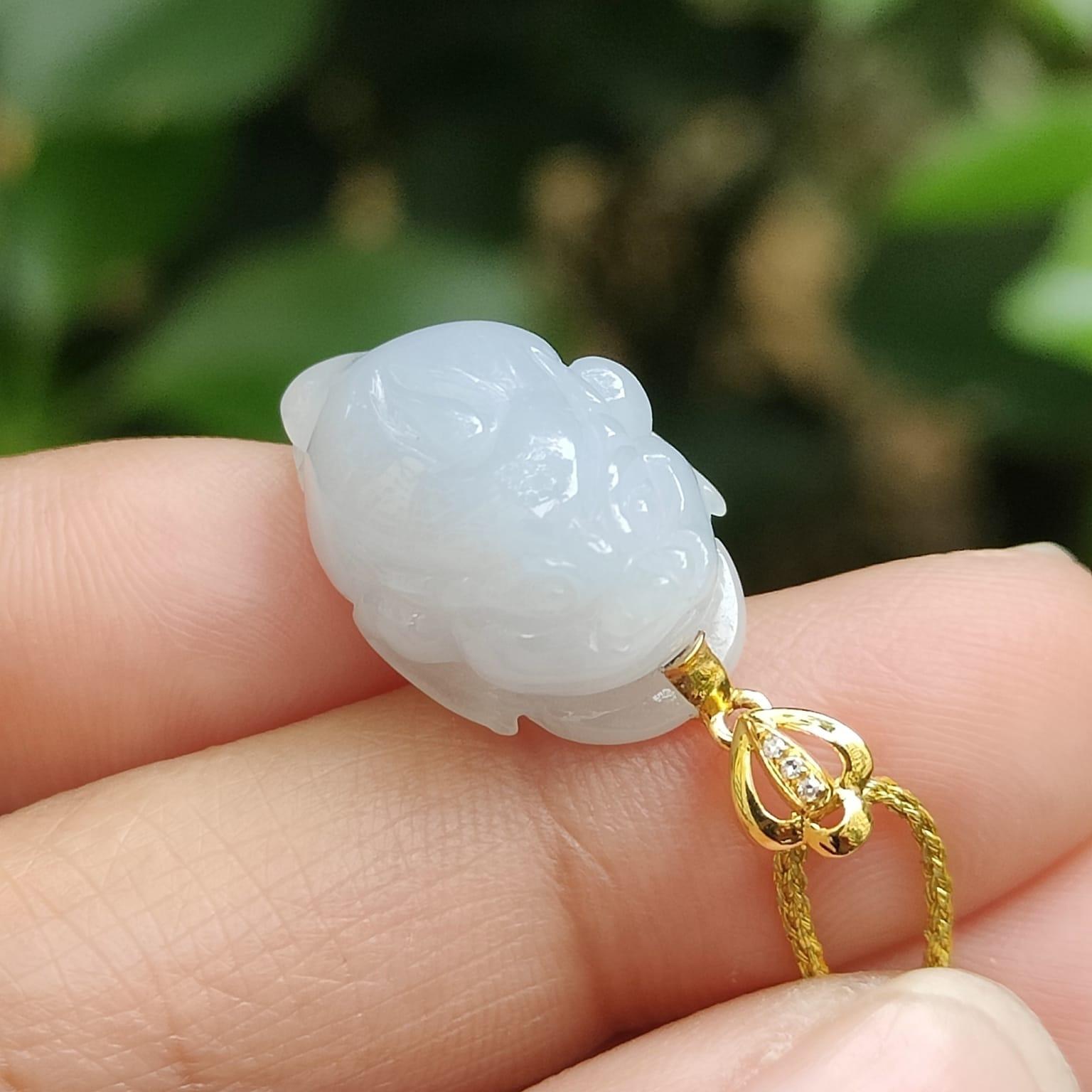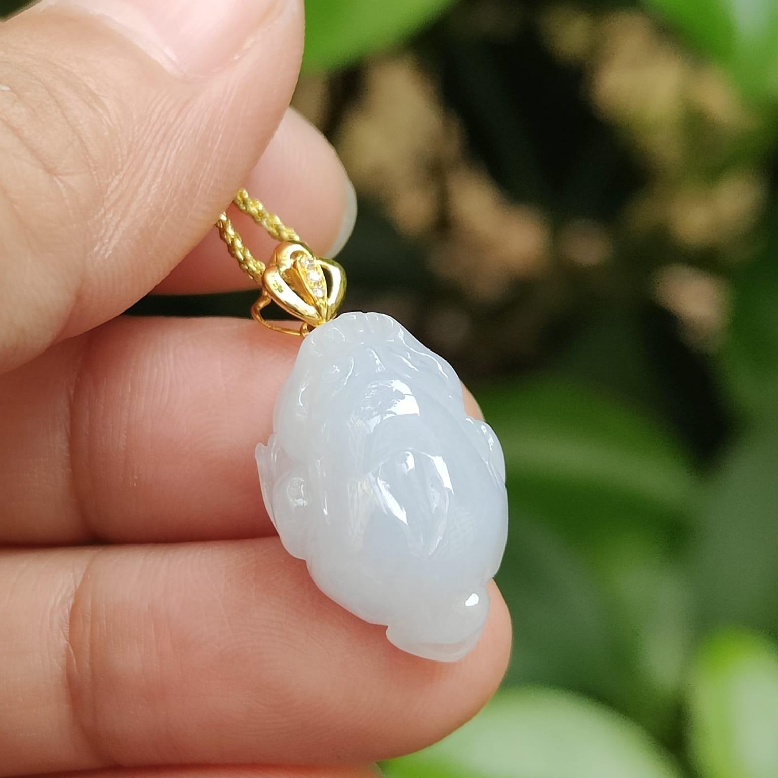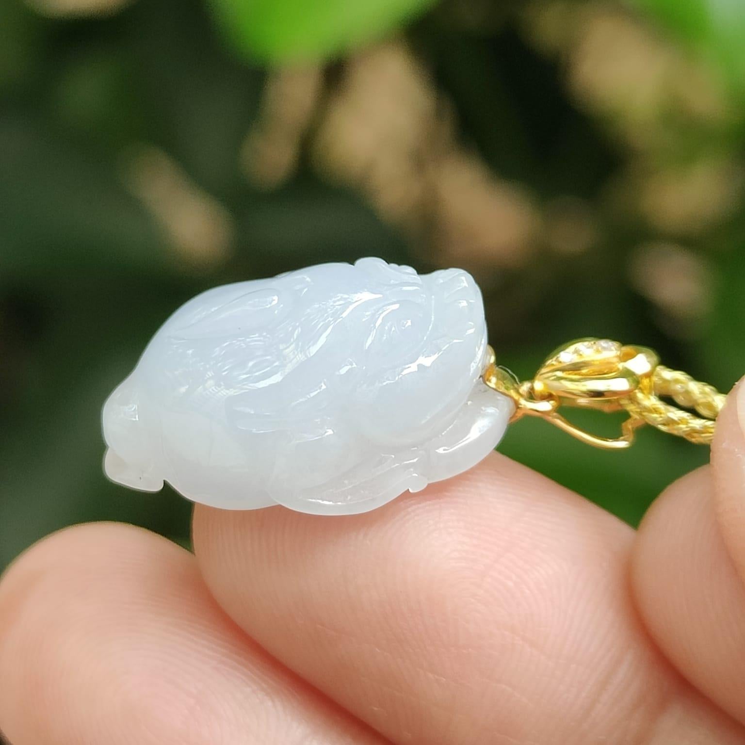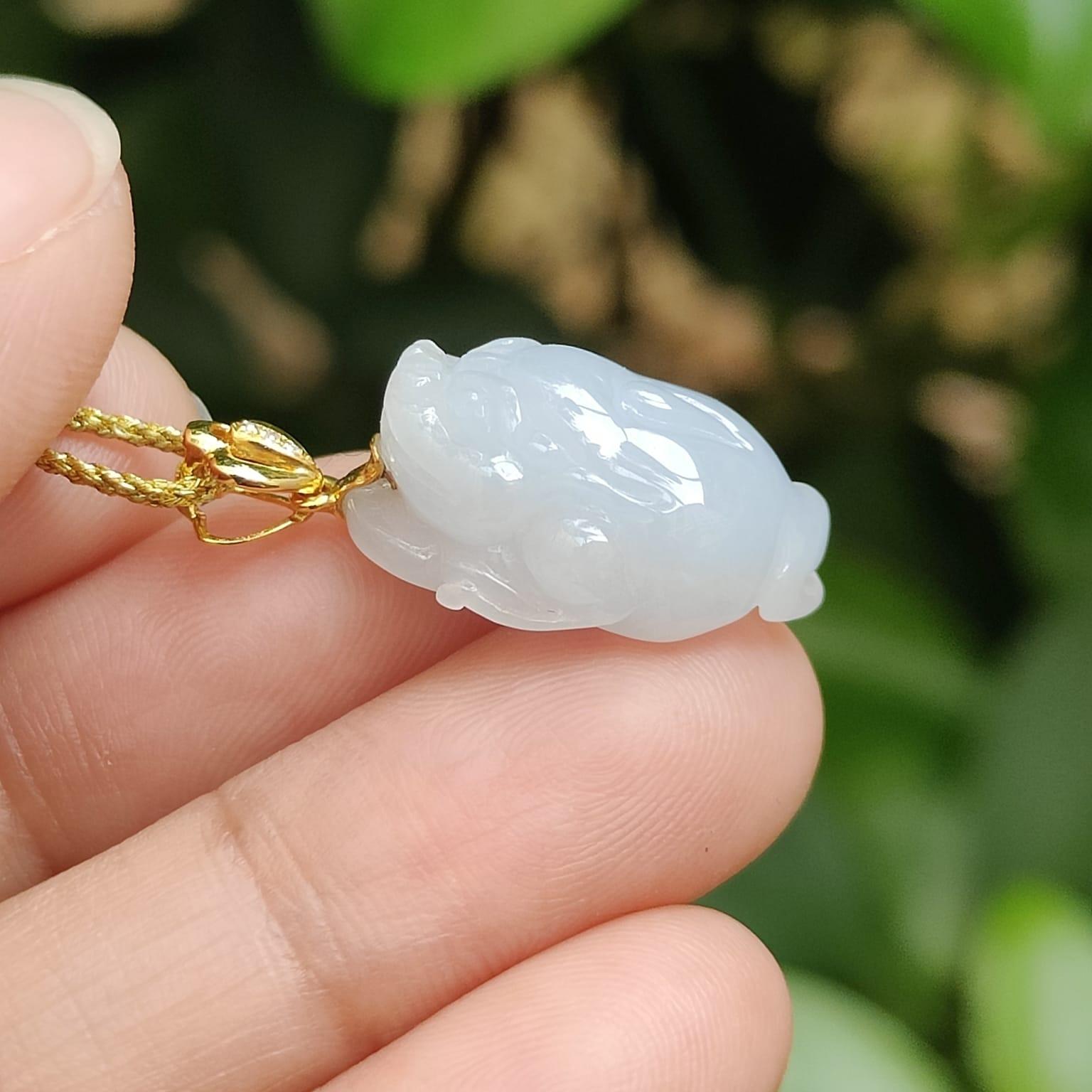 美しいライトラベンダー色の天然タイプ A ジェダイト翡翠から作られた、3 本足のヒキガエルペンダントの優雅さをぜひご覧ください。