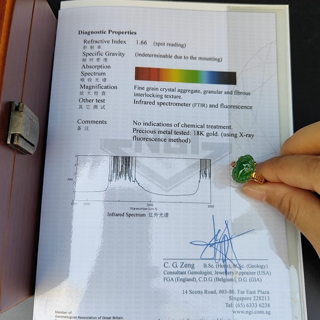 - 이 절묘한 제다이트 반지는 고품질의 장인 정신과 놀라운 디자인이 결합된 싱가포르에서 제작되었습니다.