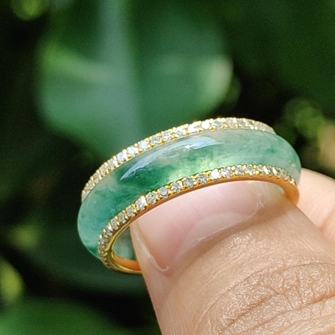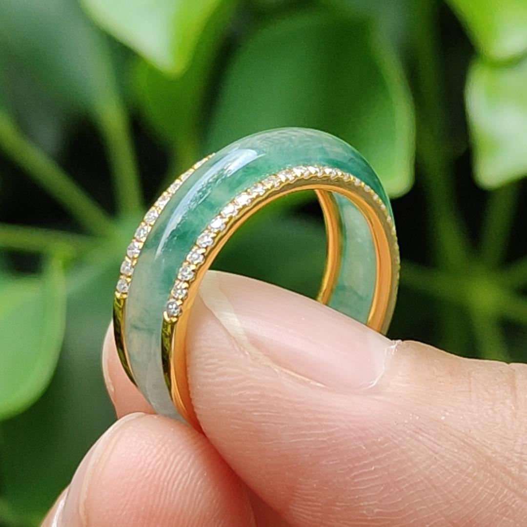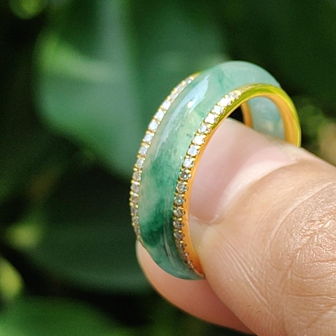 이 얼음처럼 반투명한 녹색 떠다니는 패치 천연 A형 제이드 옥 반지는 눈부신 보석 액세서리입니다.