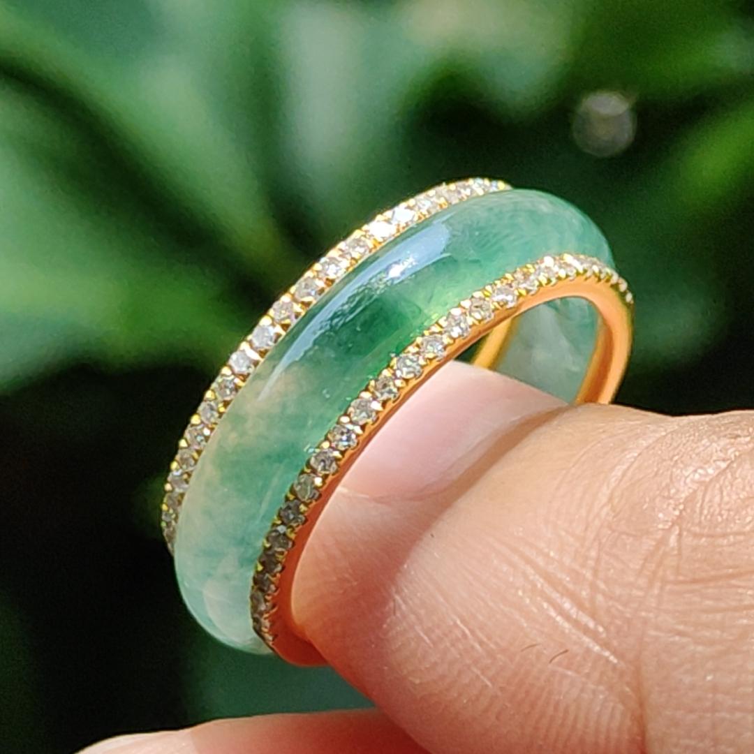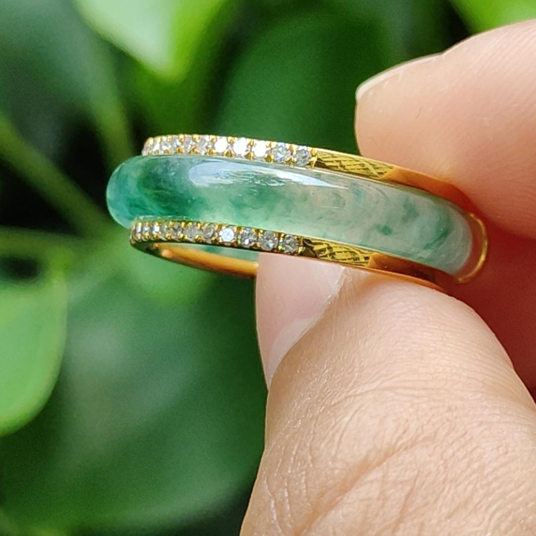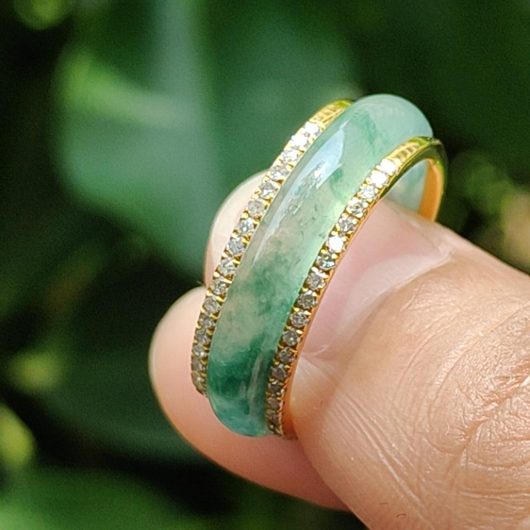 이 얼음처럼 반투명한 녹색 떠다니는 패치 천연 A형 제이드 옥 반지는 눈부신 보석 액세서리입니다.