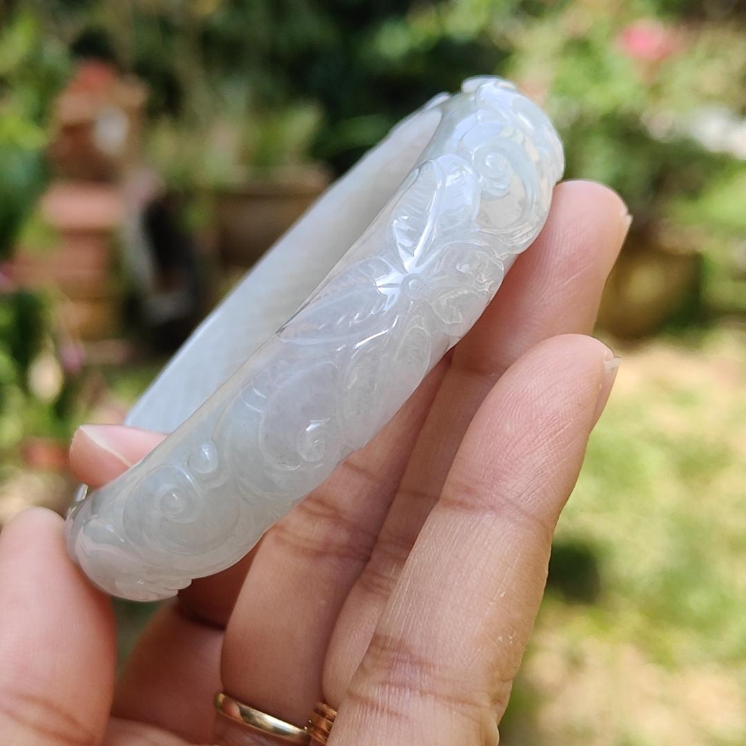 - 아름다운 디자인: 정교한 꽃무늬로 만들어진 이 팔찌는 옥의 자연스러운 아름다움을 보여줍니다.