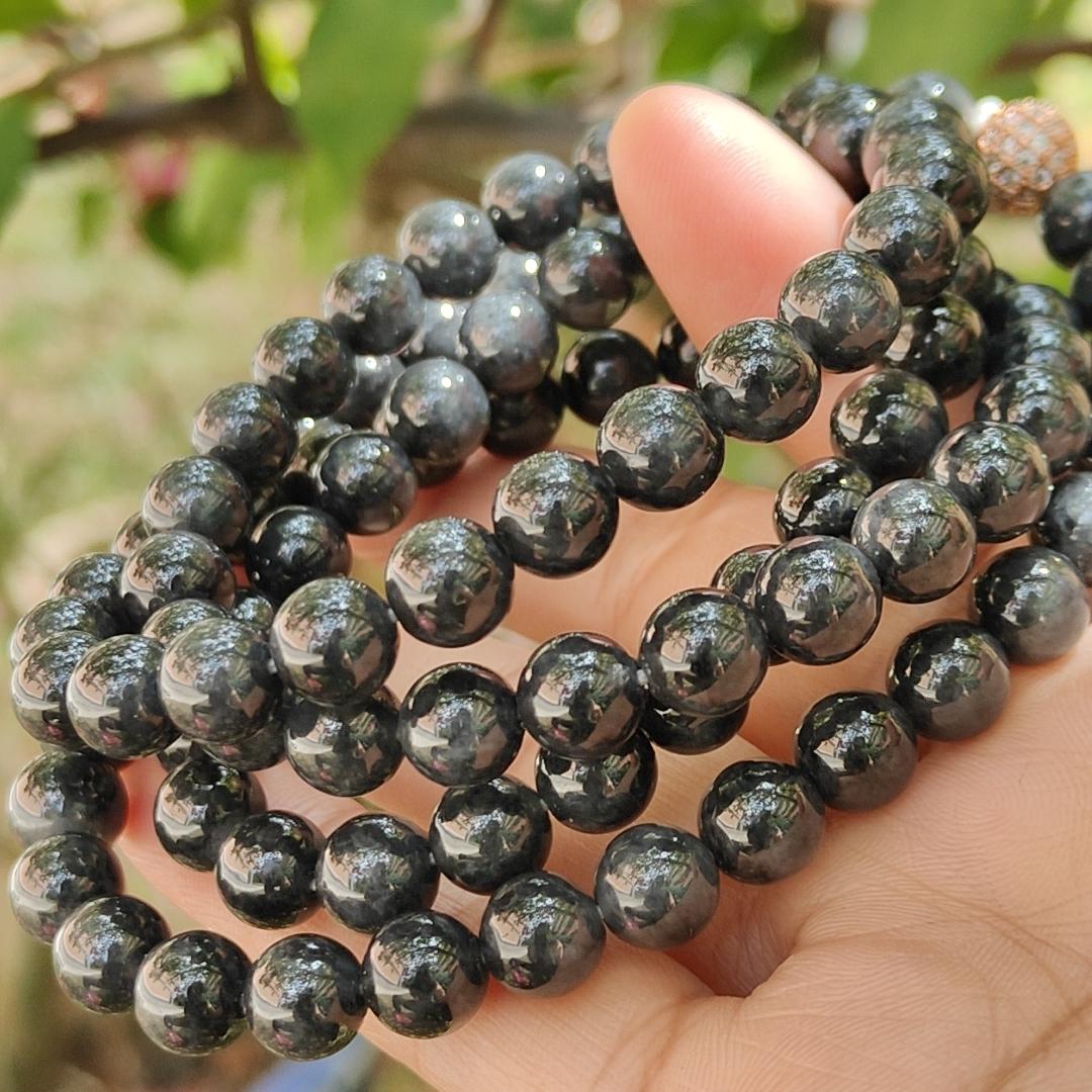 이 고품질 검은색 천연 A형 제이드 옥 팔찌/목걸이는 무게가 84.08그램이고 7.8mm * 98개의 구슬로 만들어진 멋진 보석 액세서리입니다.