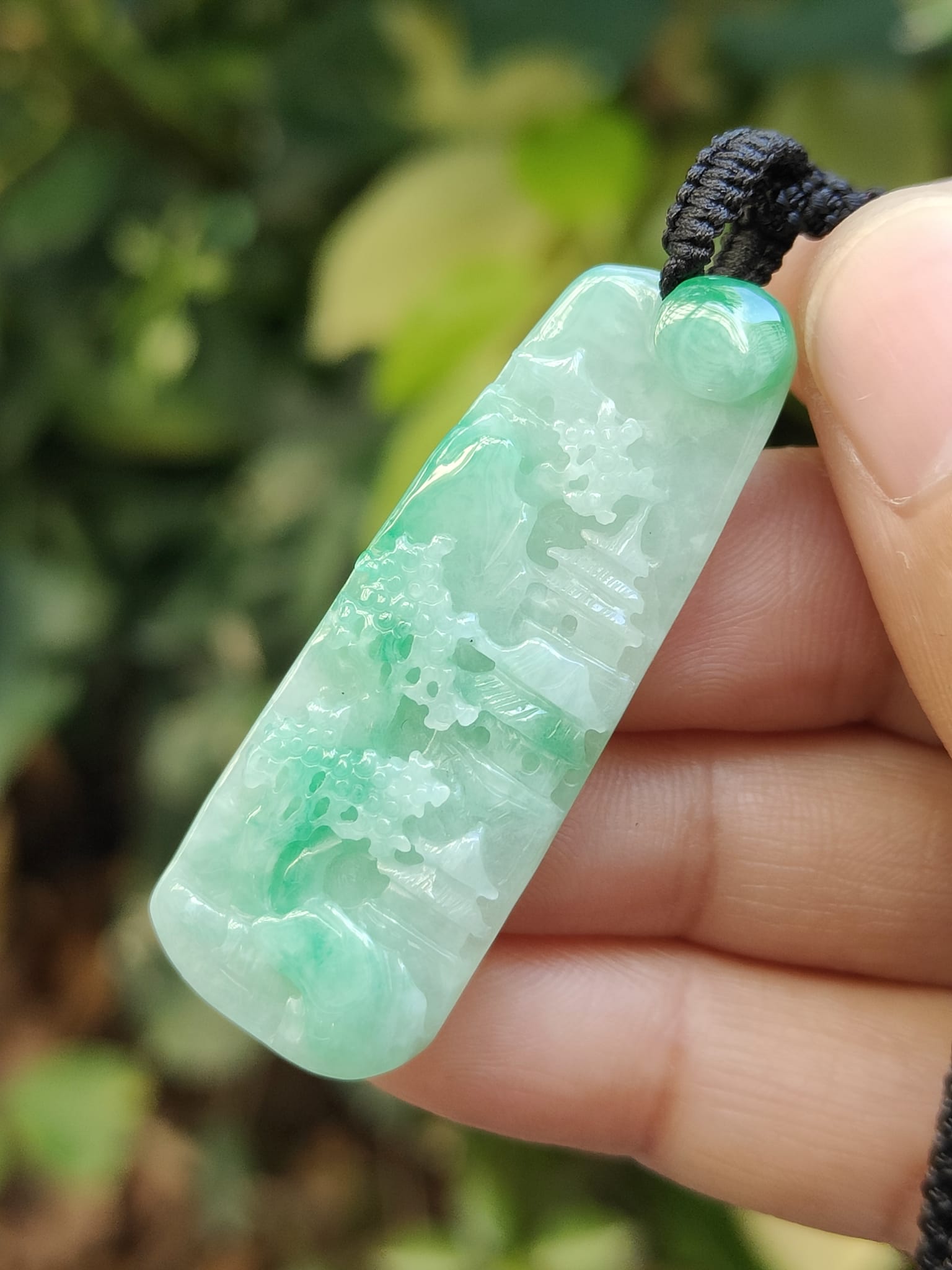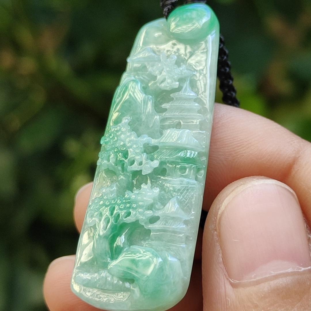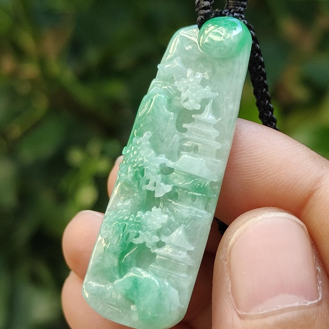 Discover the elegance of our Beautiful Pendant, expertly crafted with a scenic design on Natural Type A Jadeite Jade. This exquisite piece weighs 7.06 grams and measures 44.2 * 16.1 * 5.3 mm.