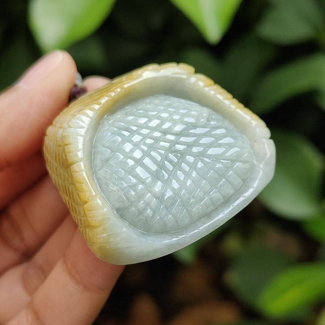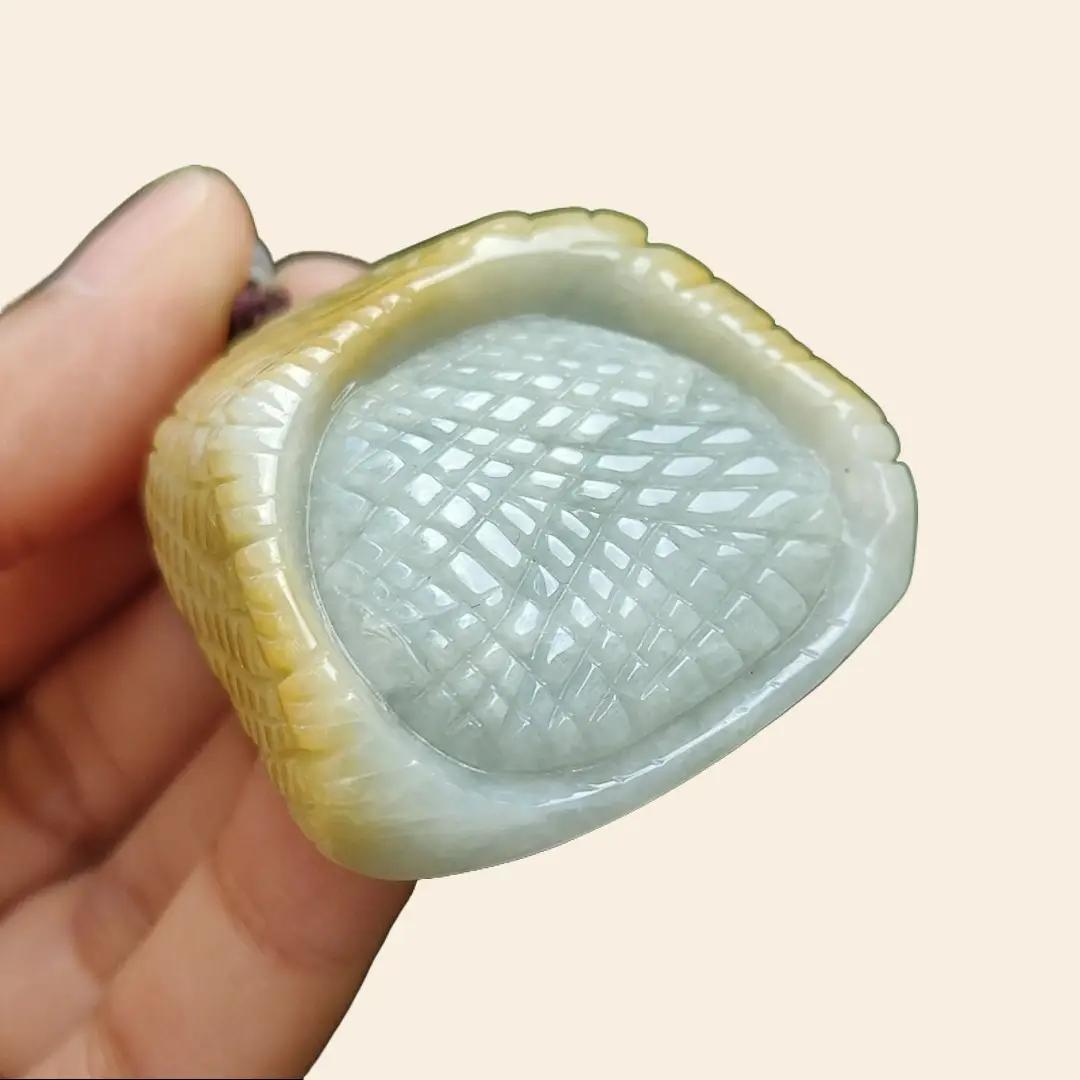 This exquisite pendant features a unique design, crafted as drips of dried millet on natural Type A Jadeite Jade, creating a stunning piece of jewelry.