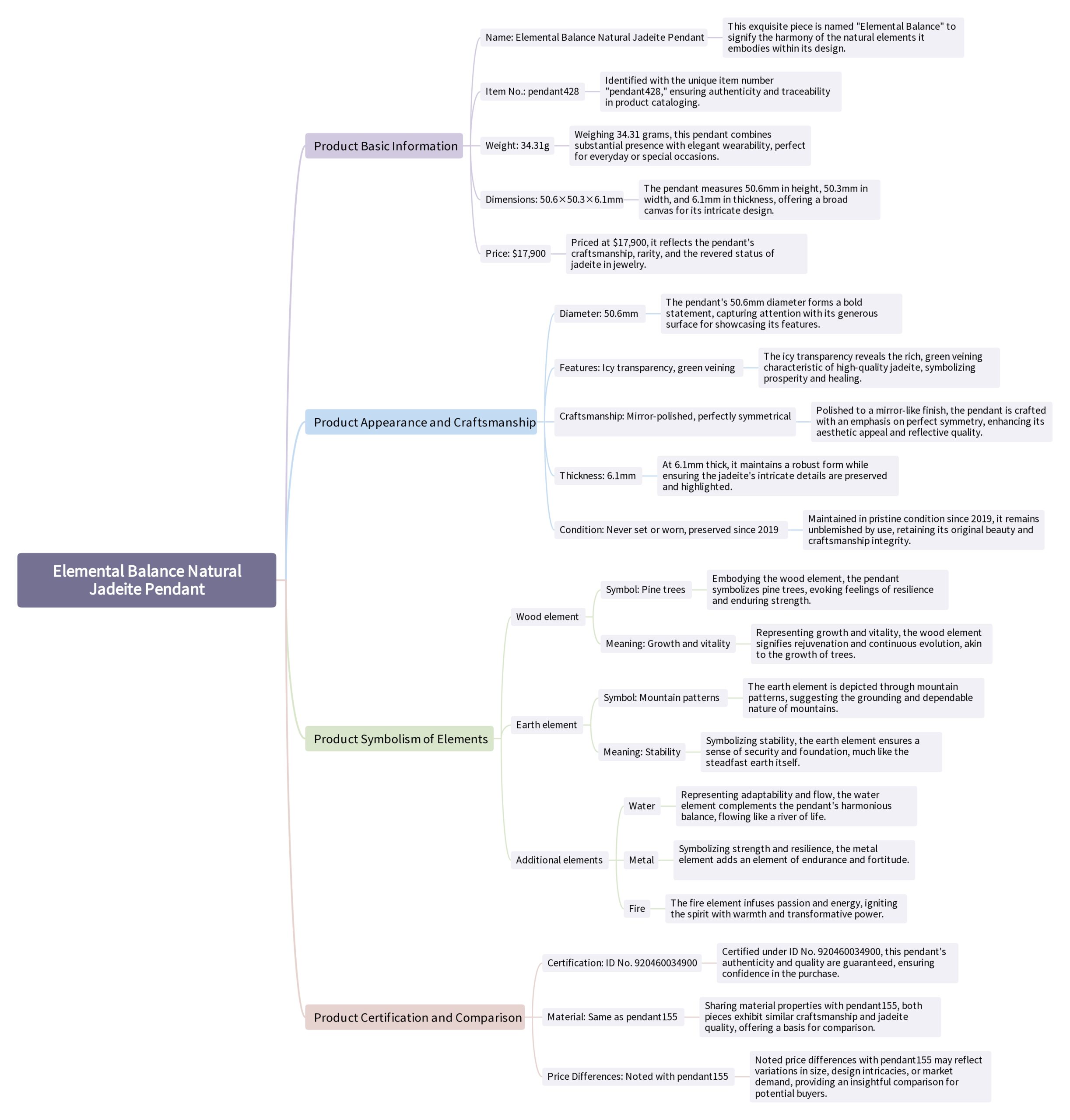 Elemental Balance Natural Jadeite Pendant 🌱🔥🪨💧🌀 – Icy Translucent 50mm Masterpiece