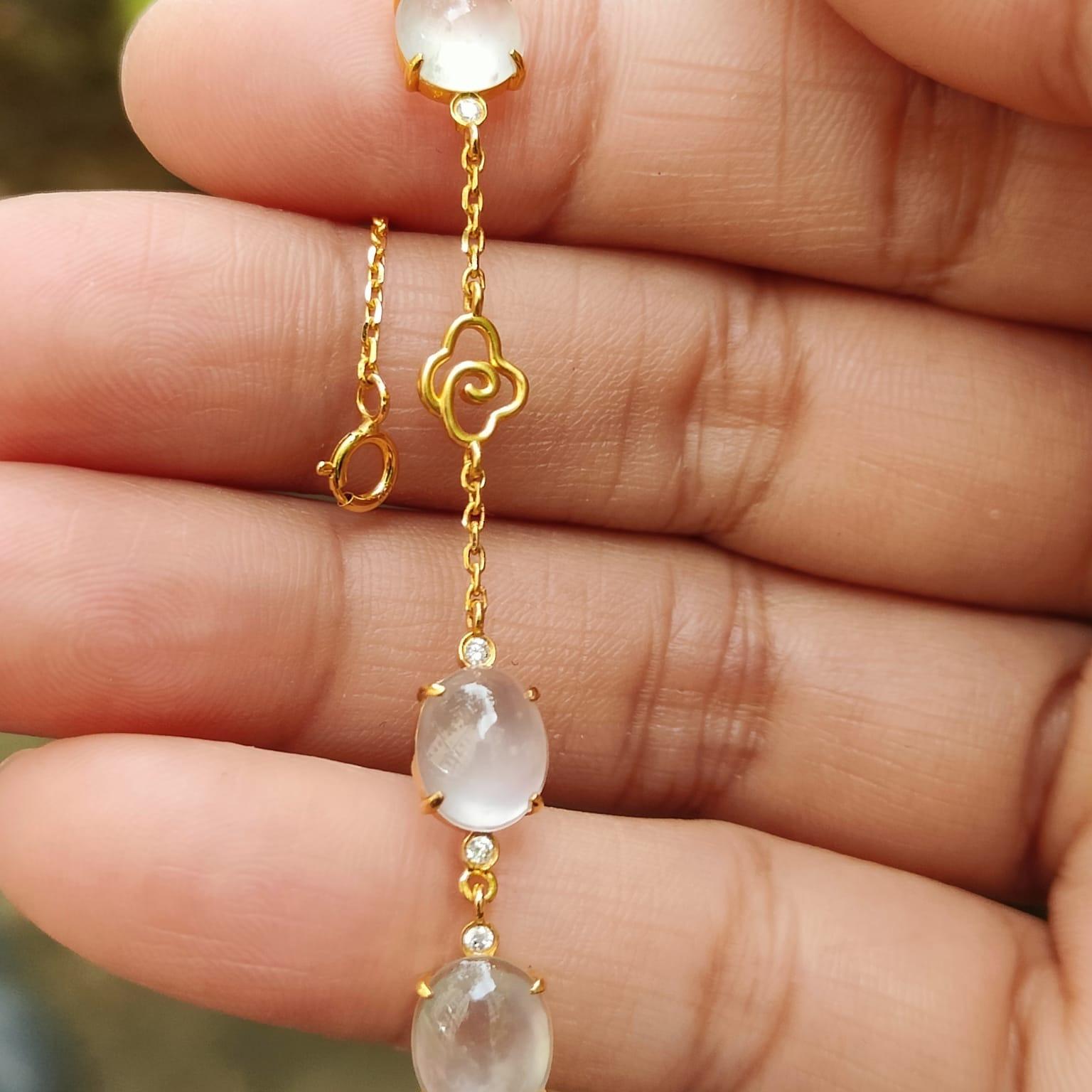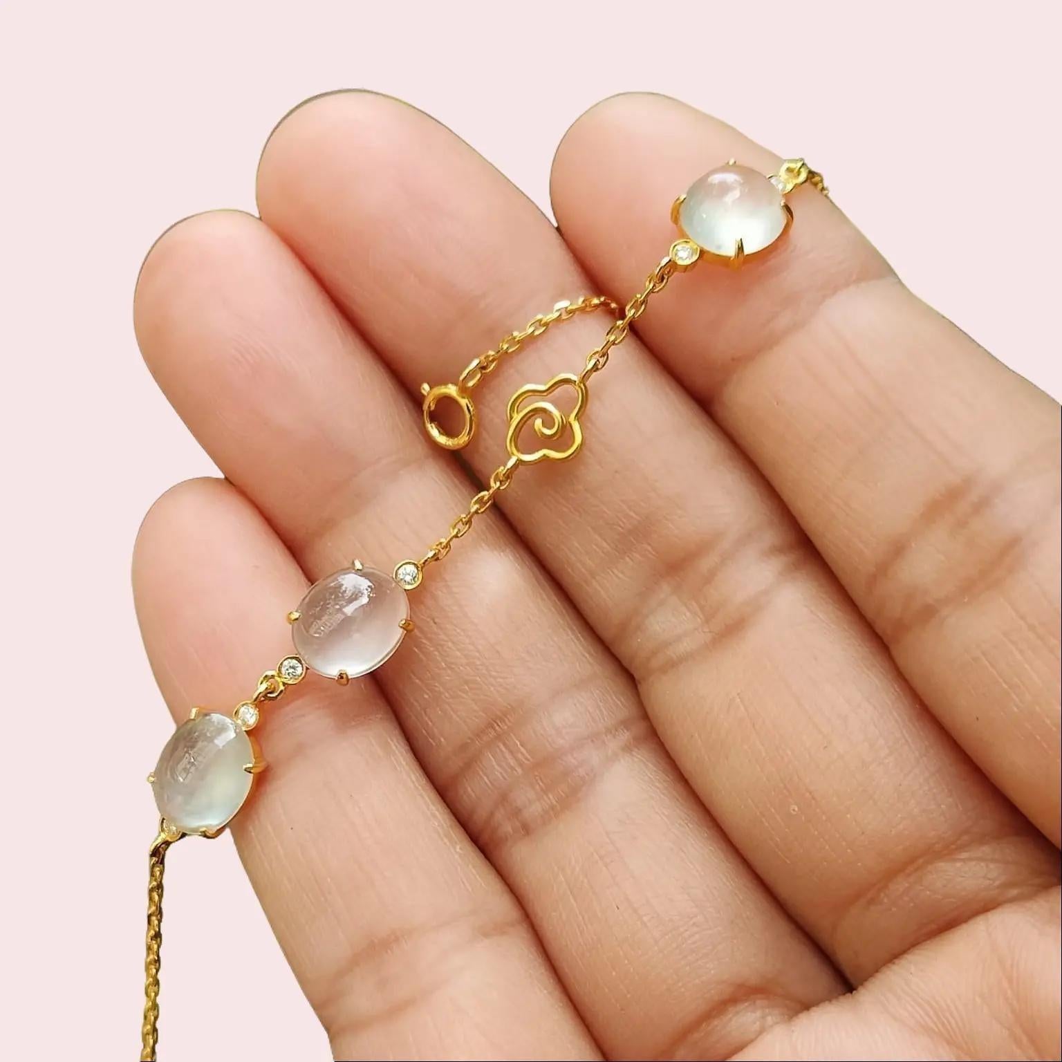 Certified by GD2109H018444, each cabochon (7mm to 8.4mm) is a marvel of clarity. The 18K gold setting, delicate yet durable, ensures the stones float effortlessly on your wrist.