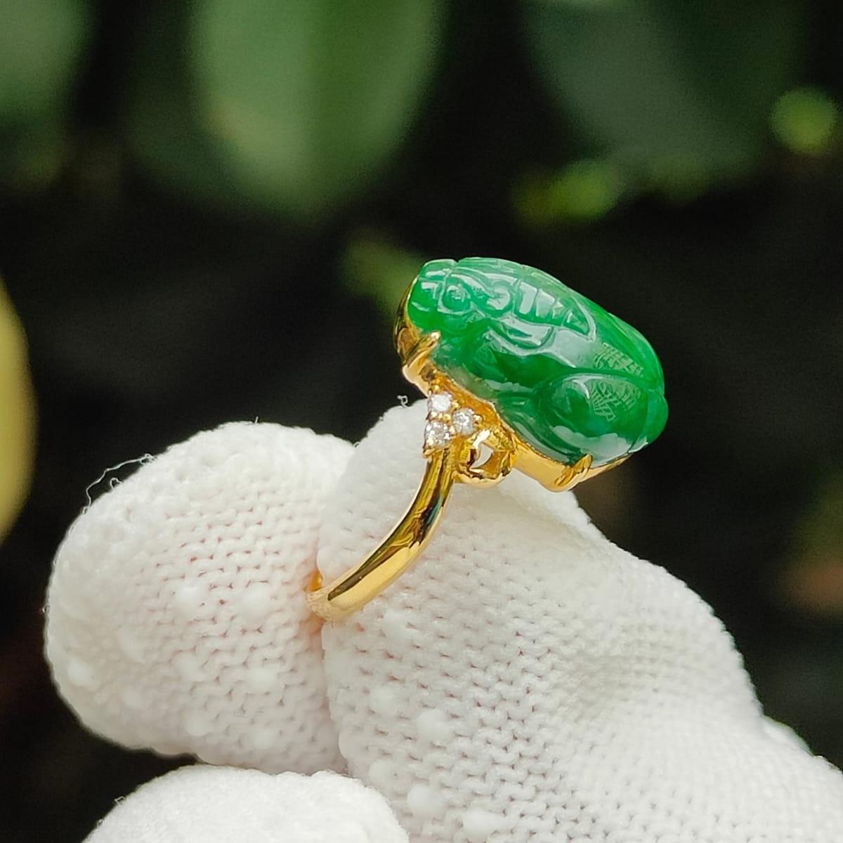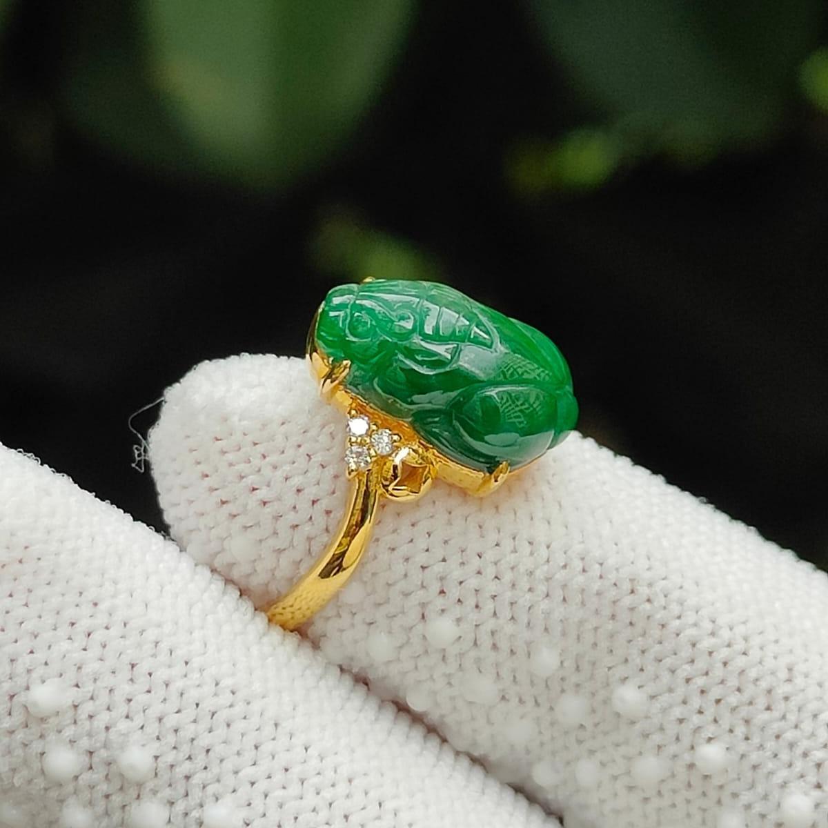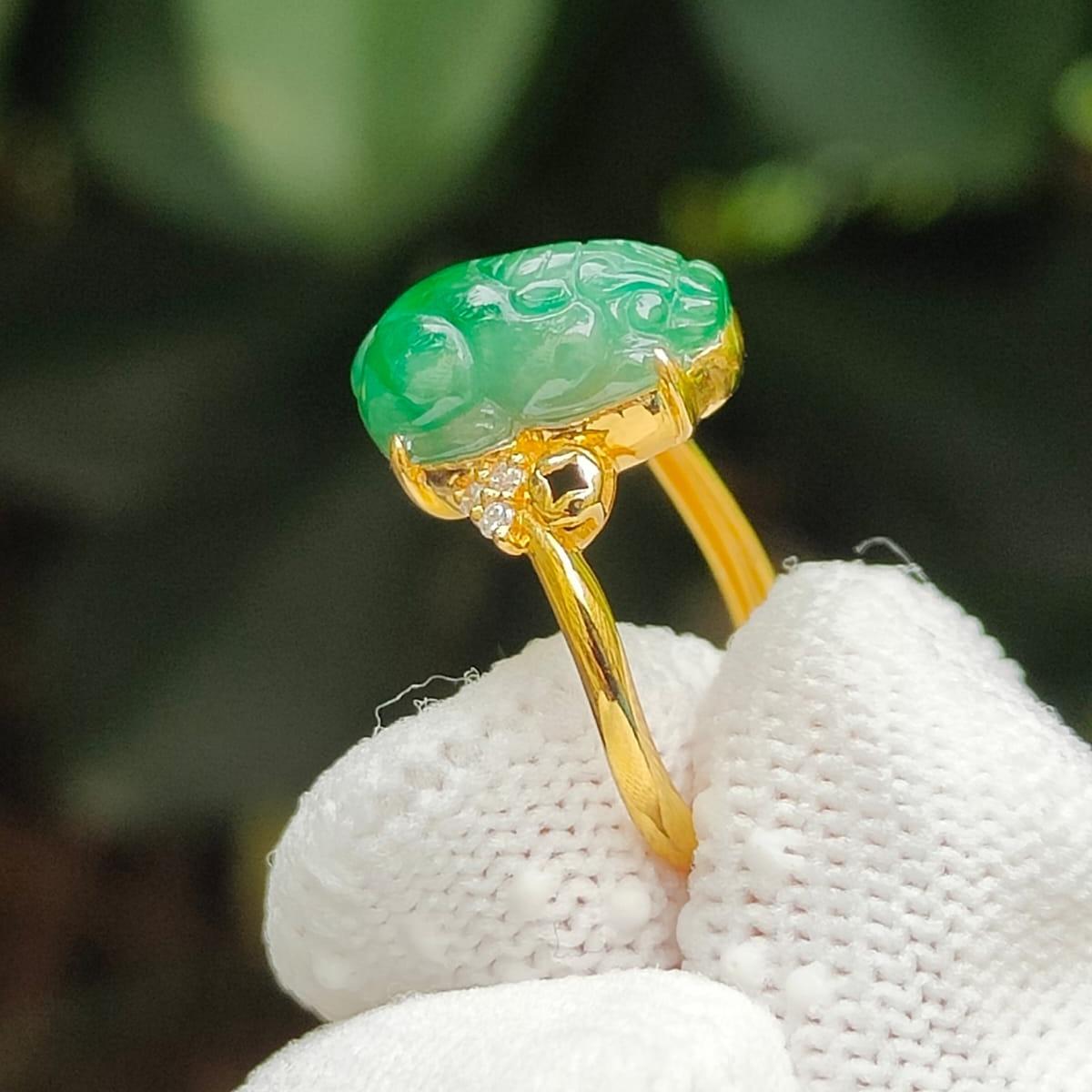 Metal Element Pixiu Ring – Museum-Worthy 18K Gold Pixiu Ring – Certified Untreated Burmese Jadeite