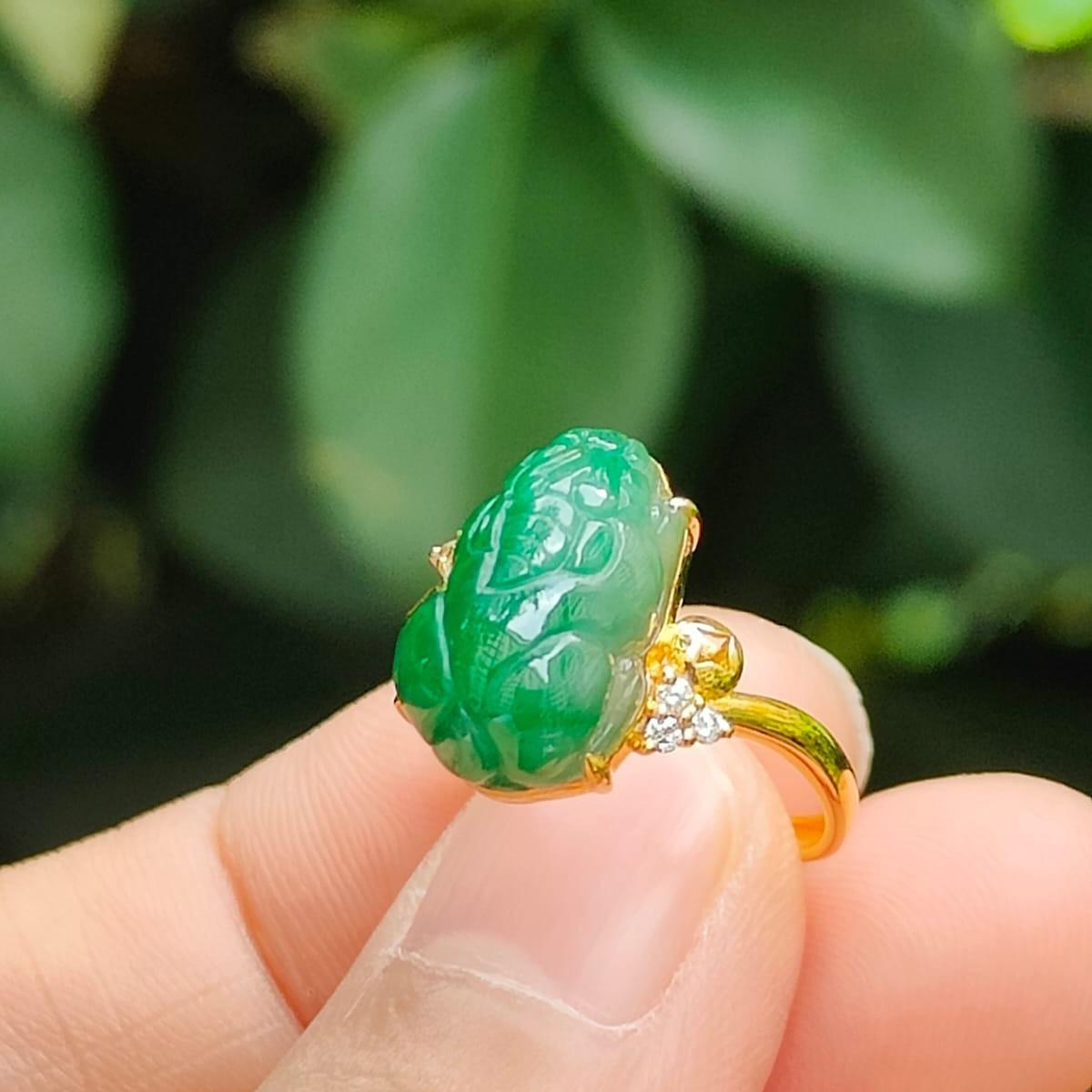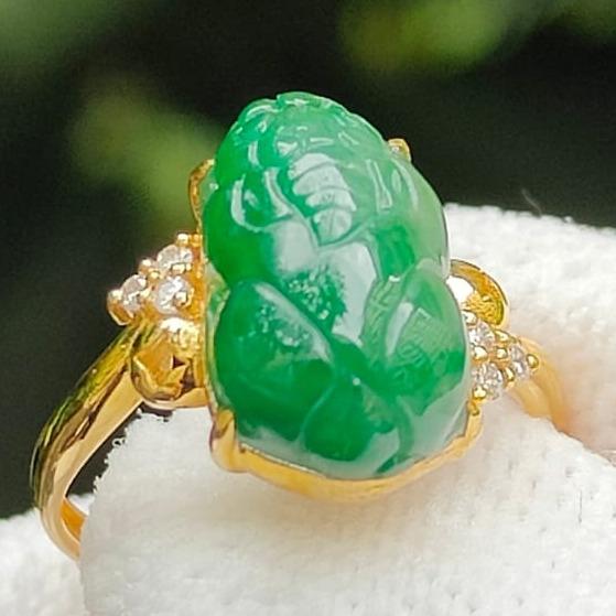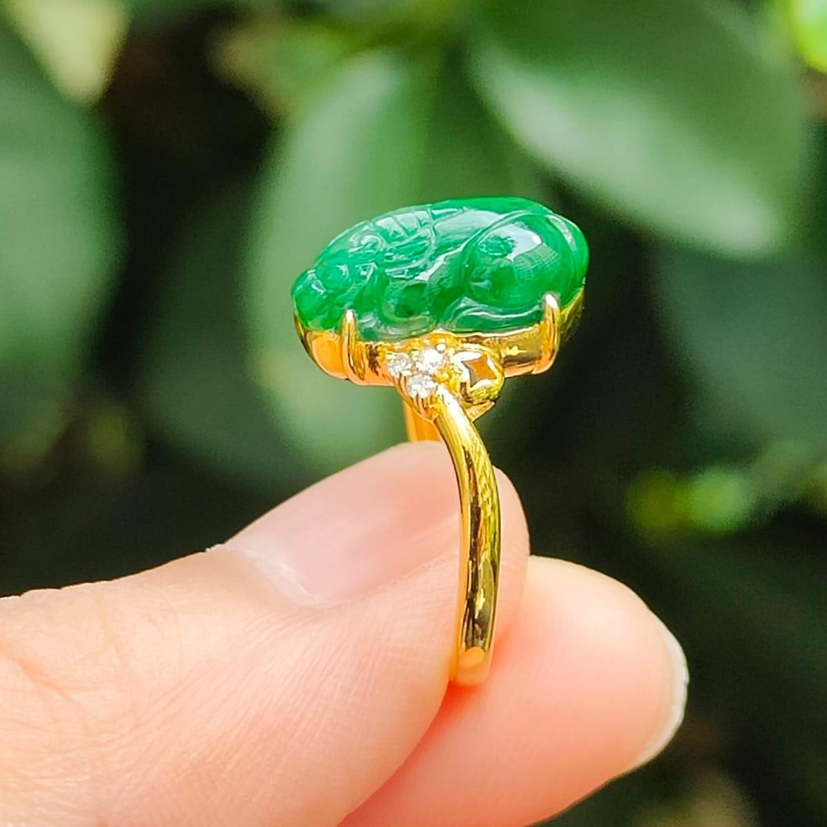 Metal Element Pixiu Ring – Museum-Worthy 18K Gold Pixiu Ring – Certified Untreated Burmese Jadeite