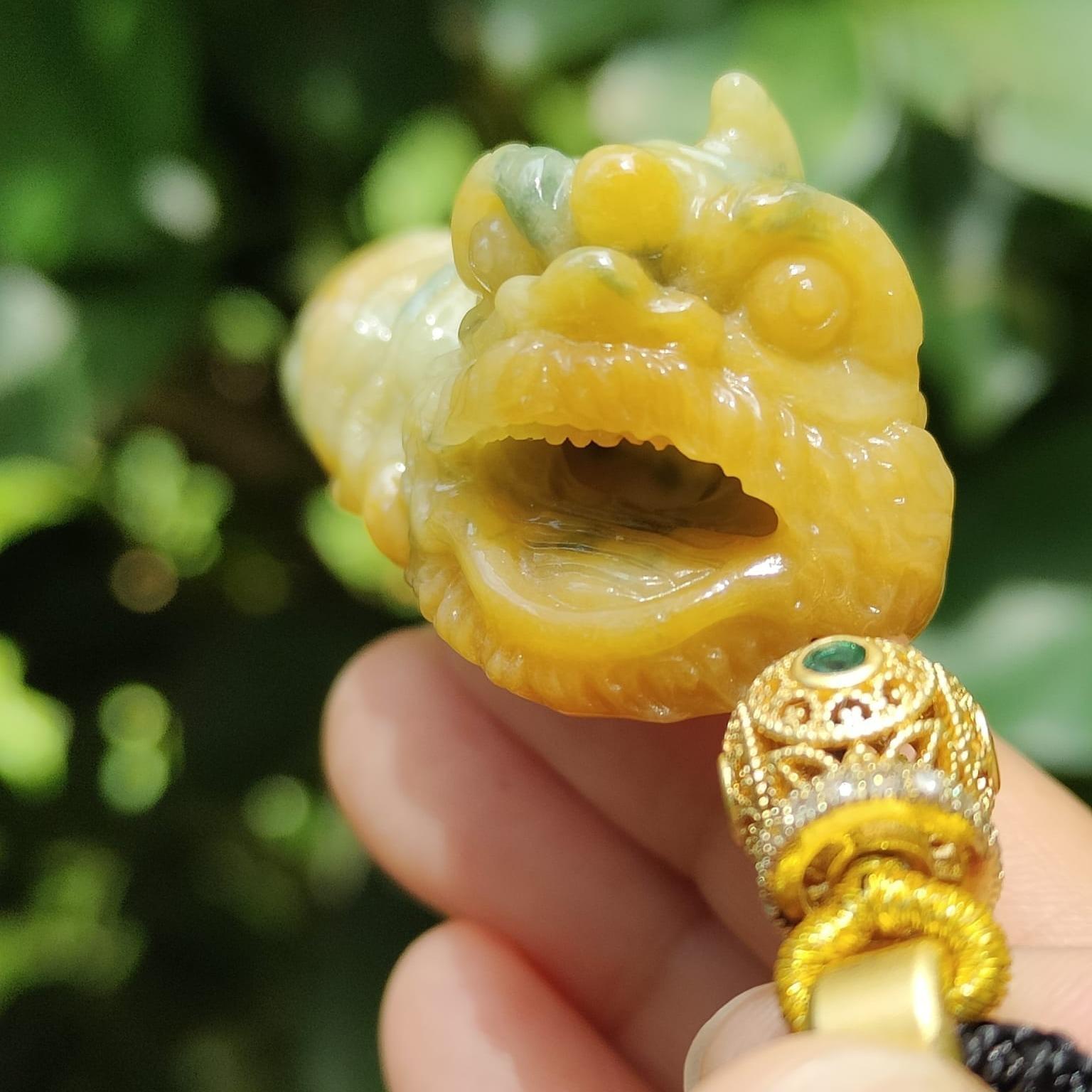 🔥🪨 🌱 – Type A Jadeite Awakening Lion Pendant