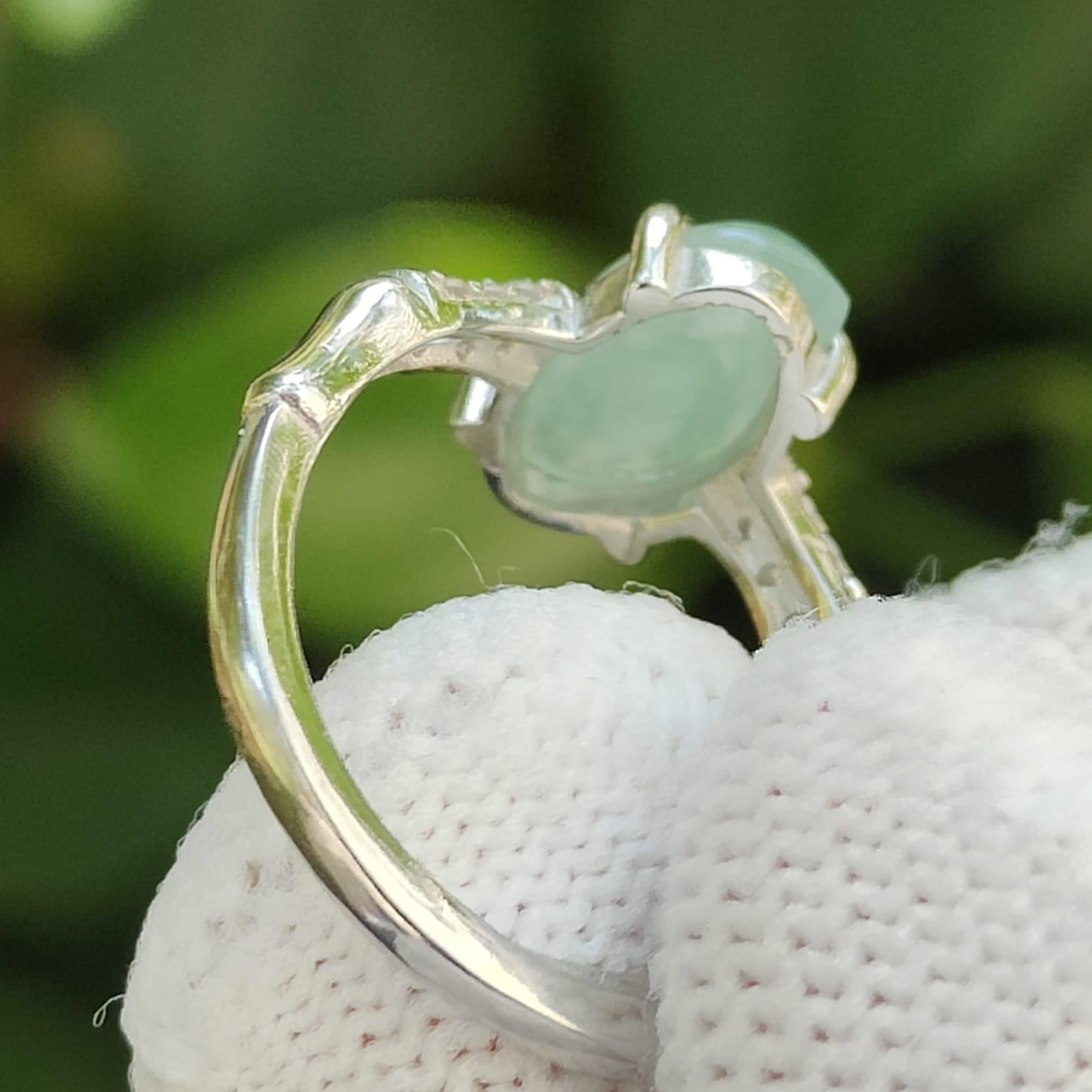 Water Energy Jade Ring π§ – Natural Type A Jadeite & S925 Silver Ring – Adjustable Bamboo Motif (Certified)