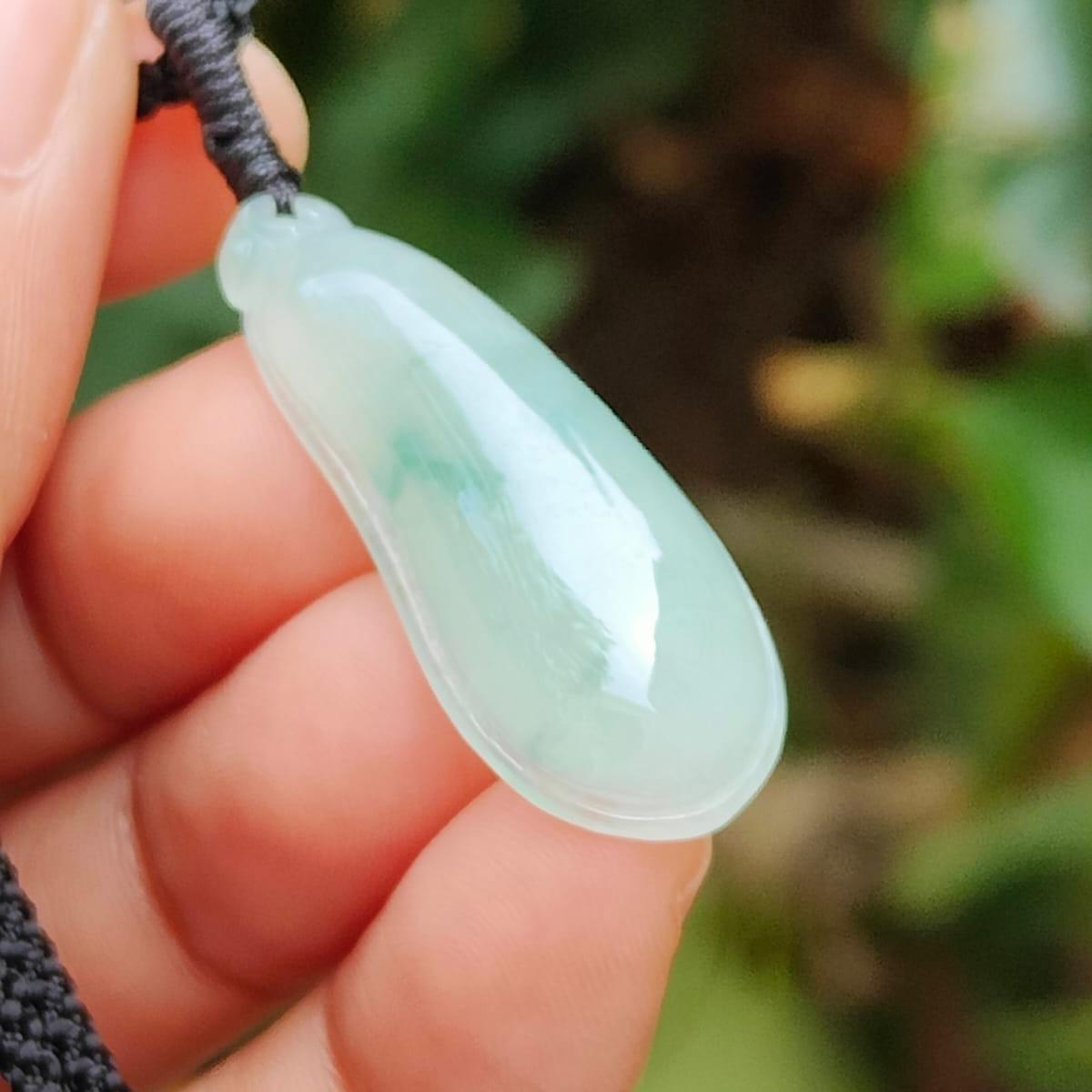 Water Essence Jade Pendant π§- Natural Type A Jadeite Fu Gua Pendant – Certified Misty Charm (GD2202H001256)