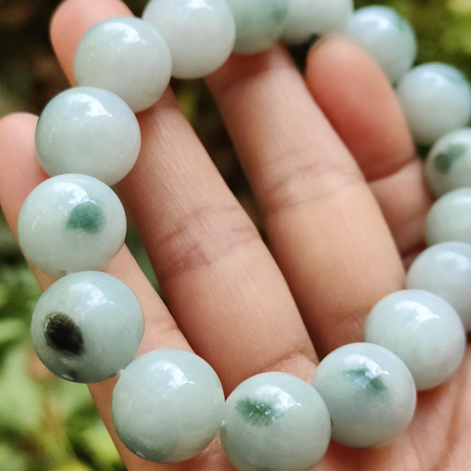 Big beads? Check. Hypnotic speckles? Double-check. This chunky yet refined bracelet is your ticket to jade head cred. Each 13.6mm bead shows off糯种’s signature “satin glow”—no cheap glassy shine here—with watercolor-green flecks that dance under sunlight.