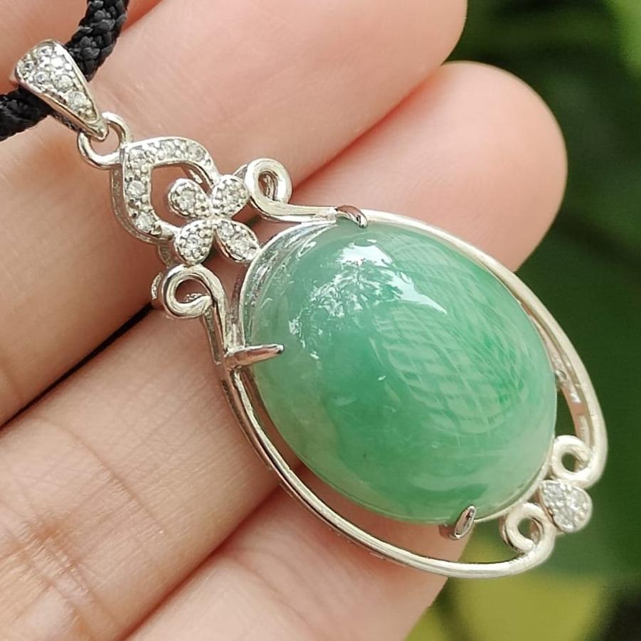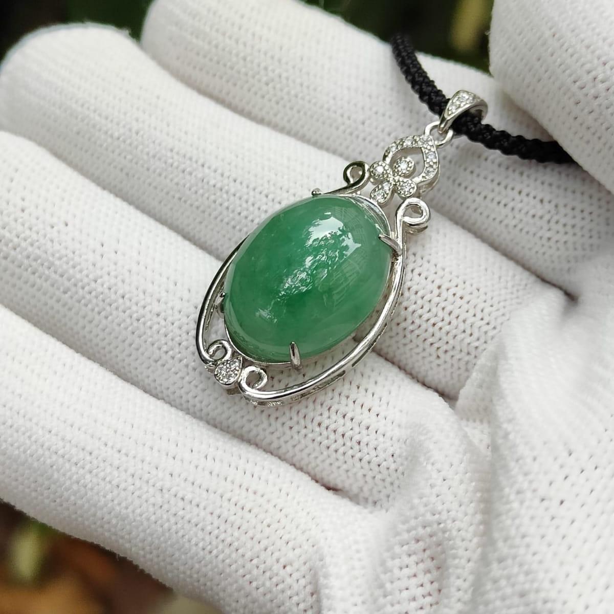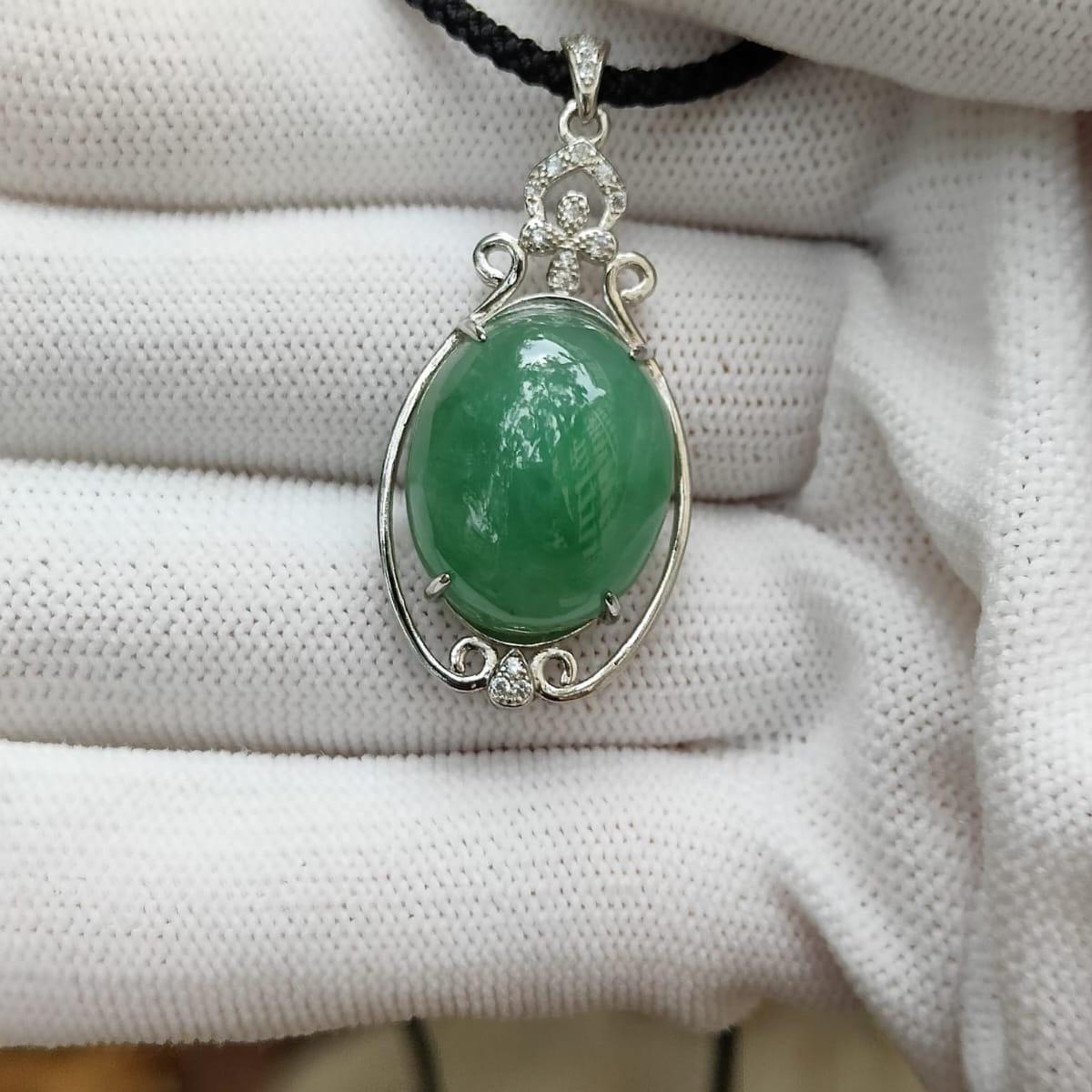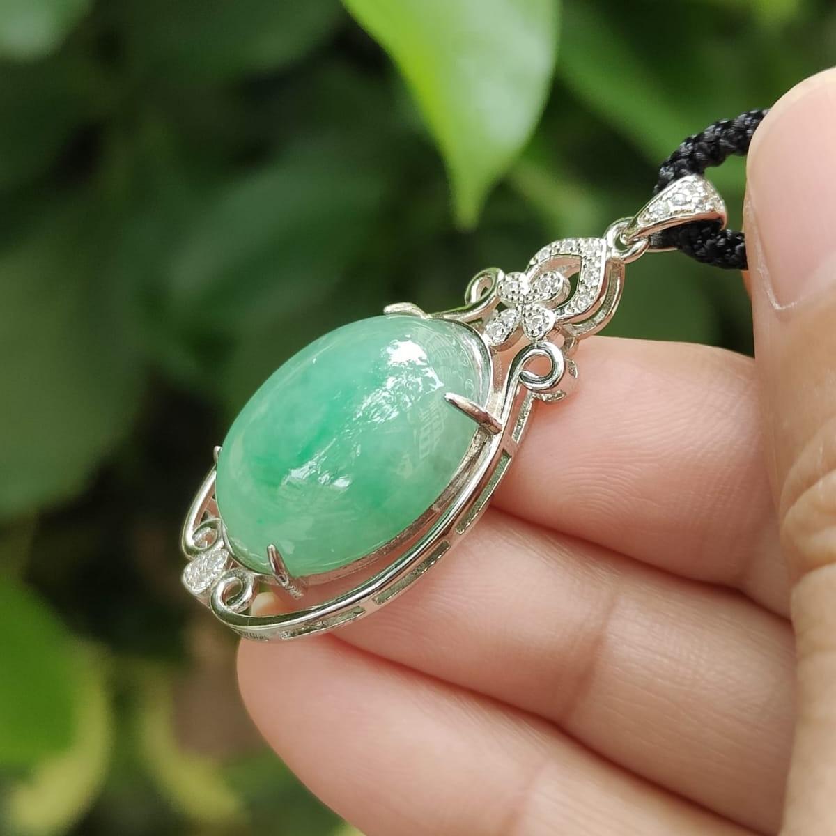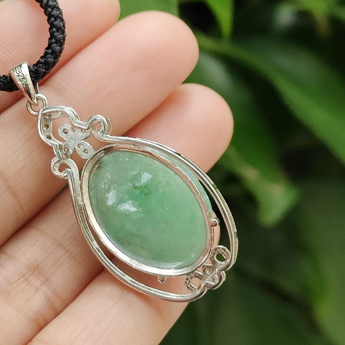 Wood Element Jade Pendant π± – Natural Type A Jadeite & S925 Silver Pendant – Certified Green Cabochon (GD2111H017517)
