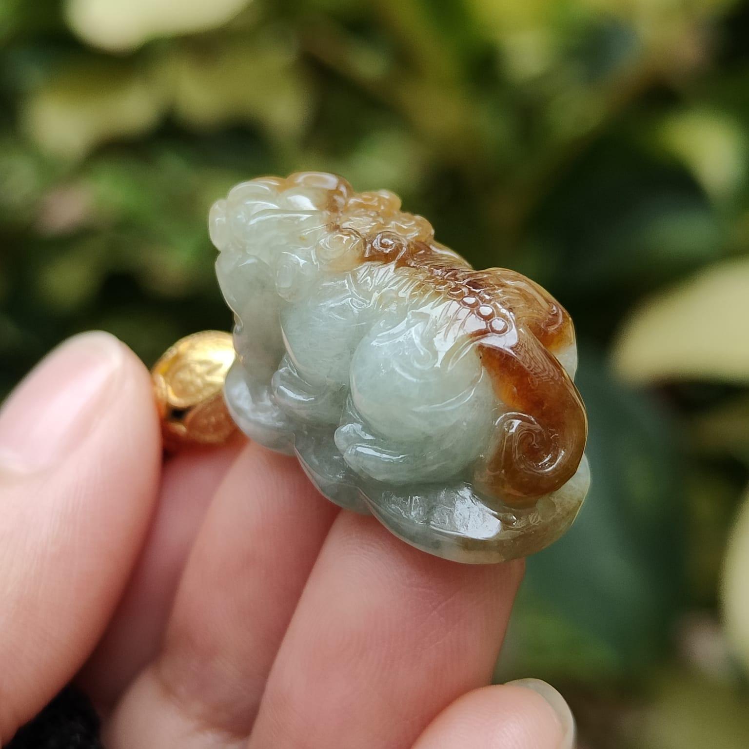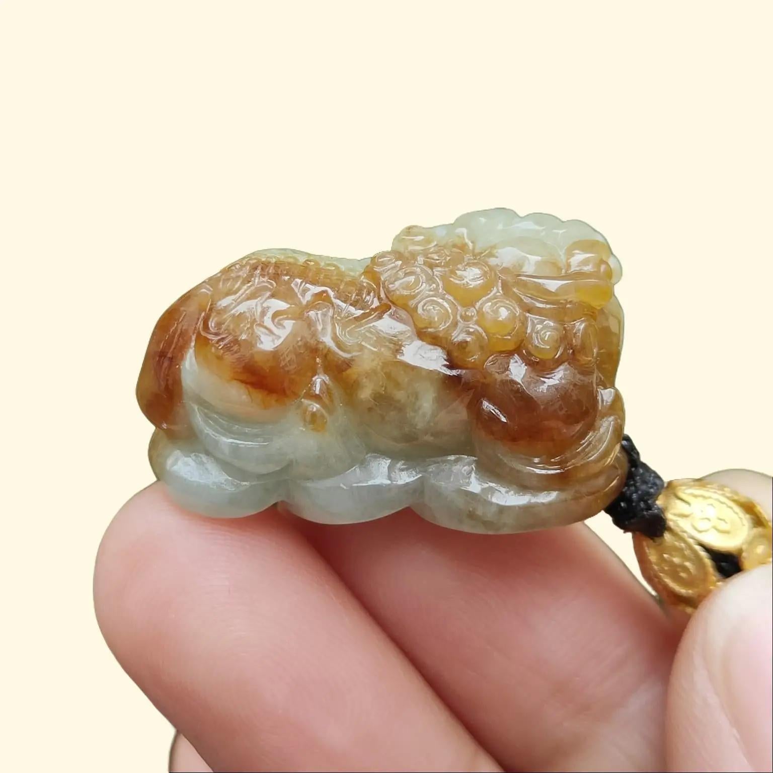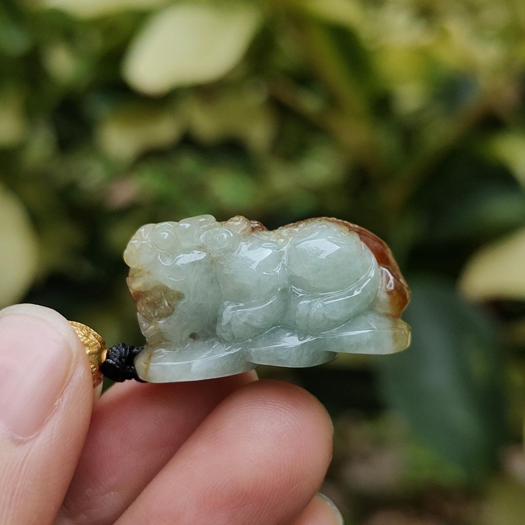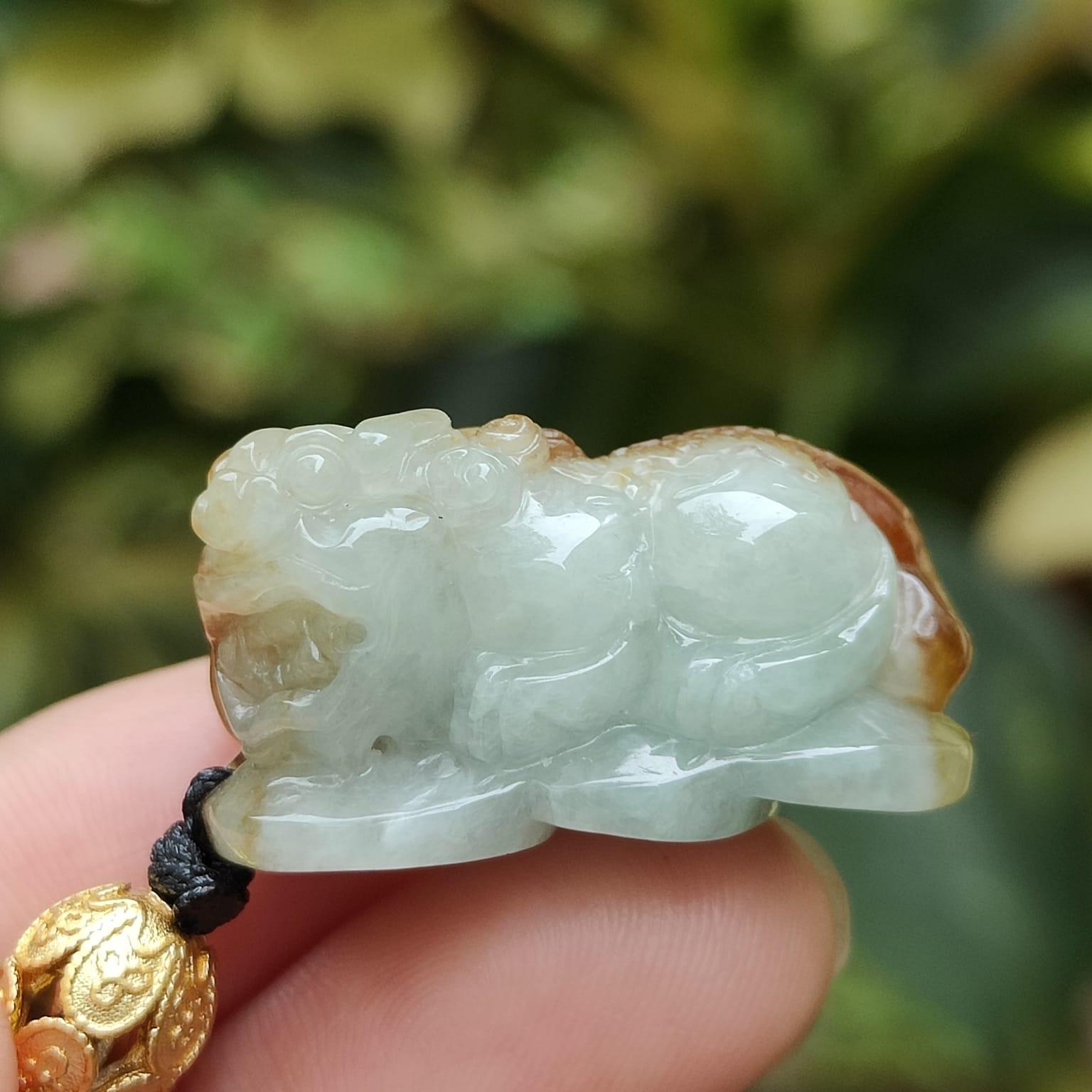 Este pingente de leão feito de jade natural tipo A é uma joia deslumbrante que exala elegância e sofisticação.