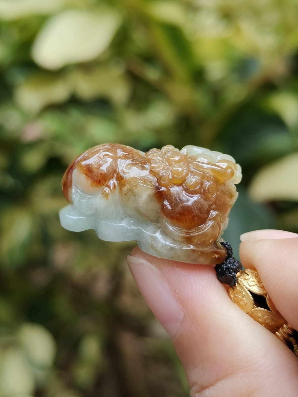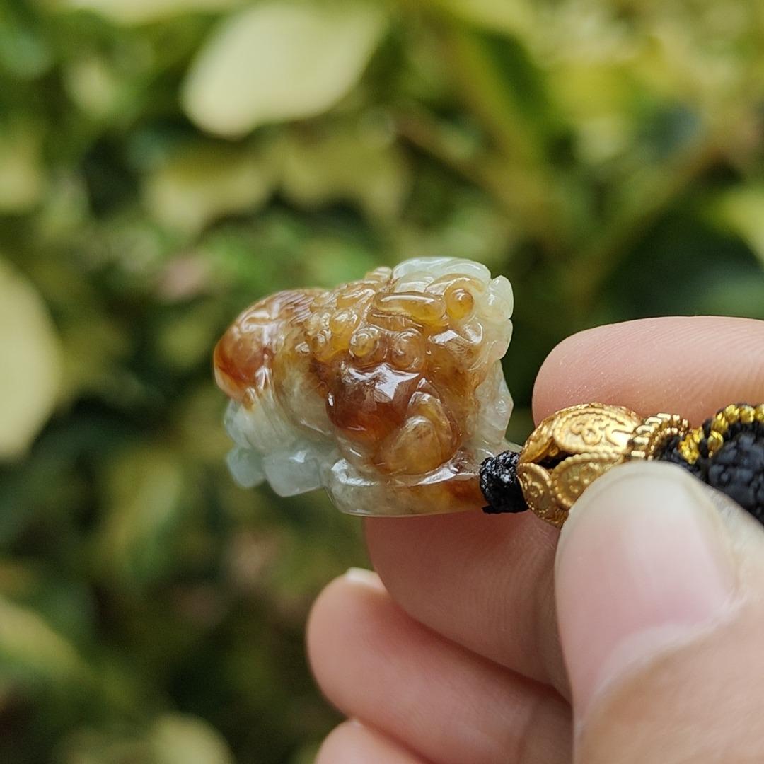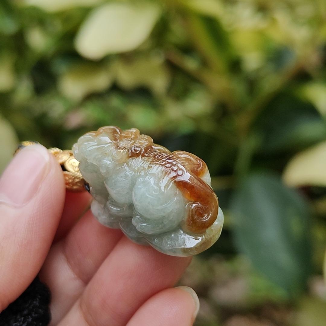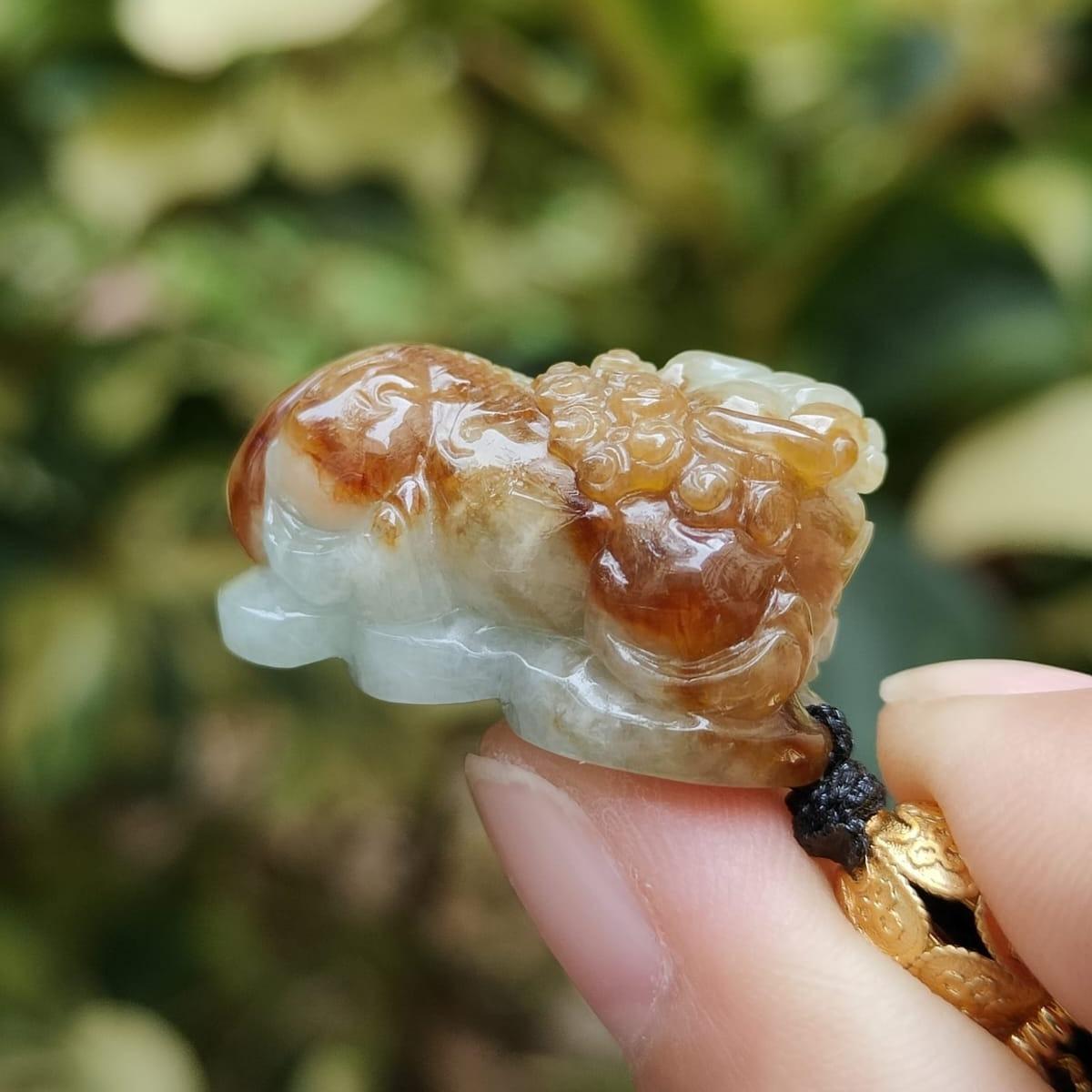 Este pingente de leão feito de jade natural tipo A é uma joia deslumbrante que exala elegância e sofisticação.