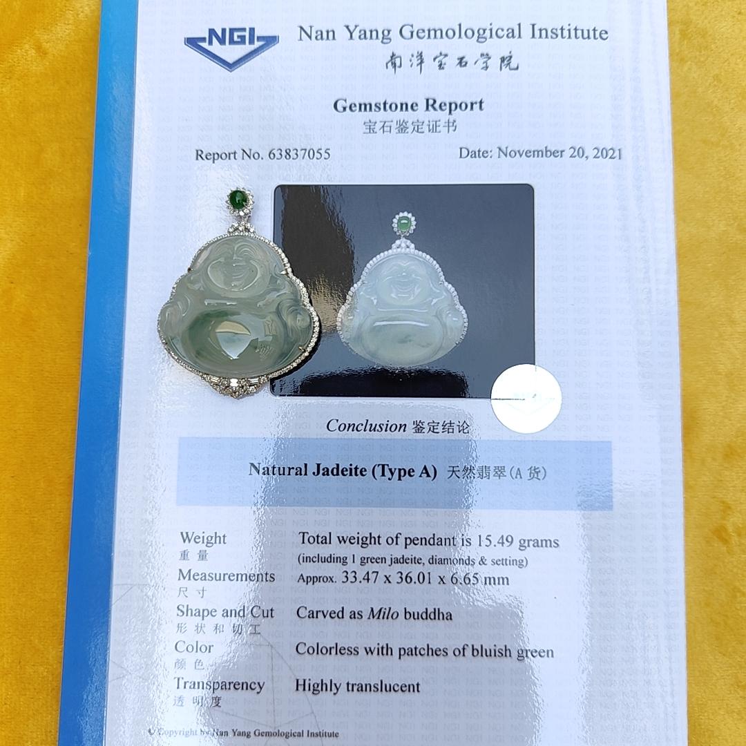 இந்த நேர்த்தியான 18k தங்க பதக்கம் ஒரு உண்மையான தலைசிறந்த படைப்பாகும், இது வாழ்க்கையில் சிறந்த விஷயங்களைப் பாராட்டுபவர்களுக்கு ஏற்றது. பதக்கத்தில் 15.49 கிராம் எடையும் 33.47 * 36.01 * 6.65 மிமீ அளவும் கொண்ட NGI ஜெம்ஸ்டோன் அறிக்கையுடன் கூடிய அதிக ஒளிஊடுருவக்கூடிய இயற்கை வகை A ஜேடைட் உள்ளது.