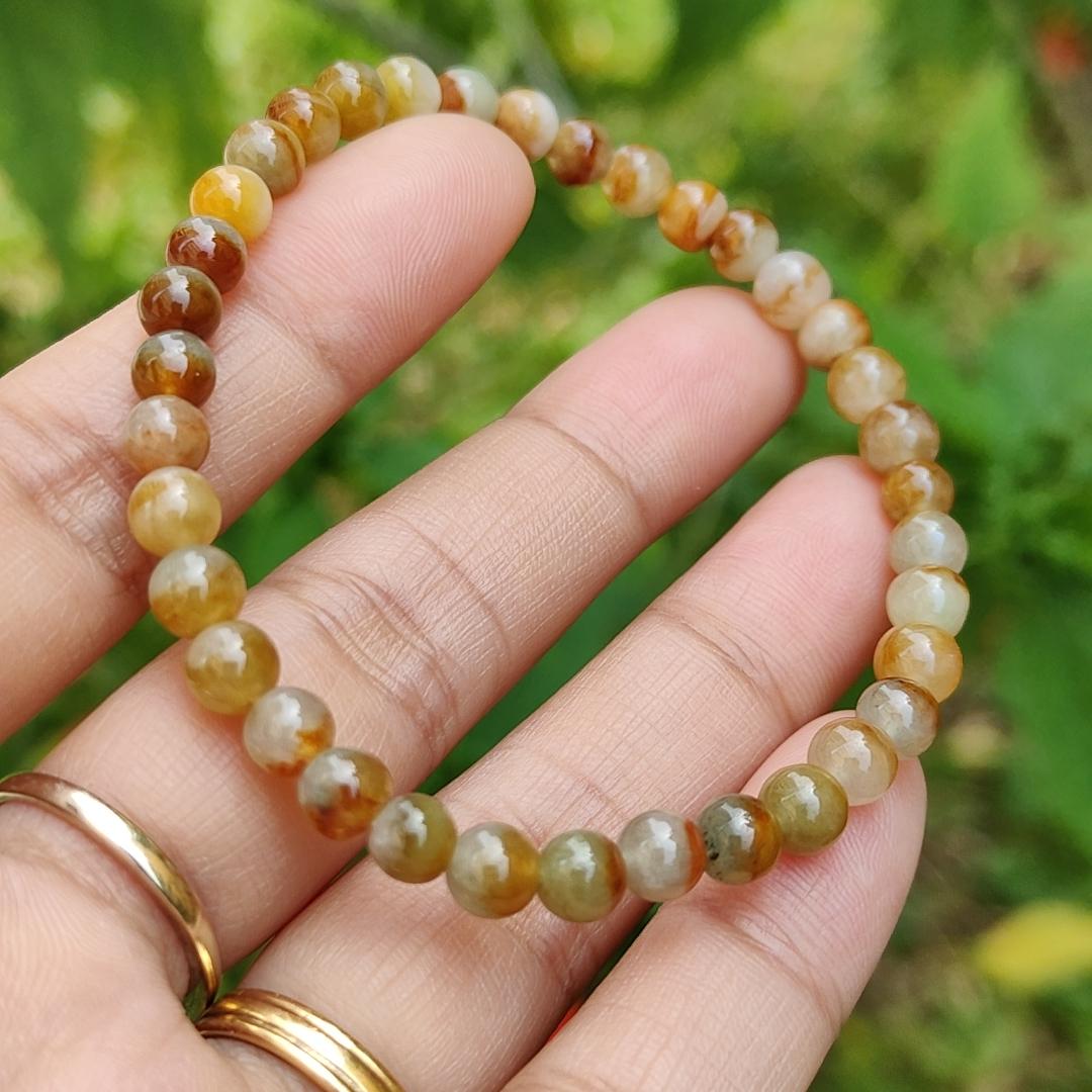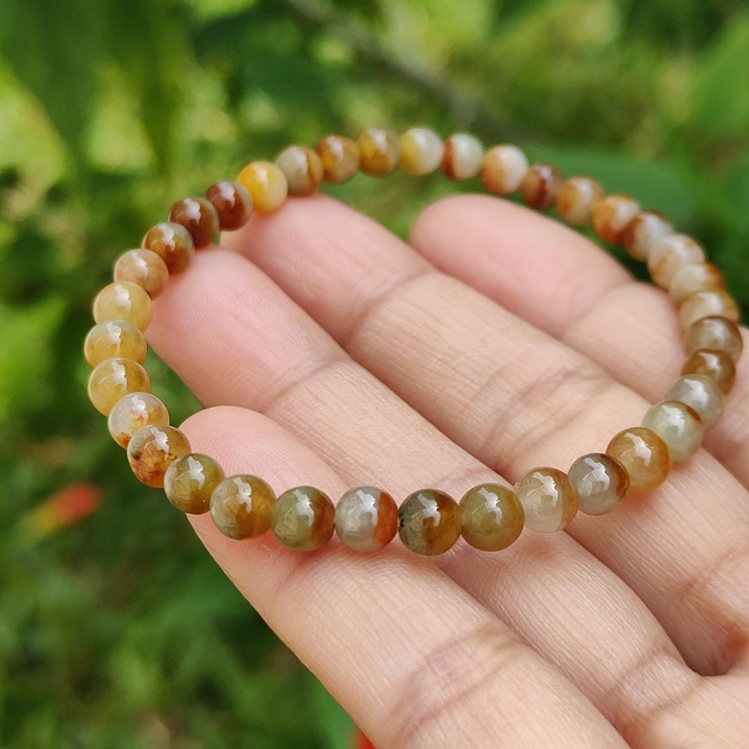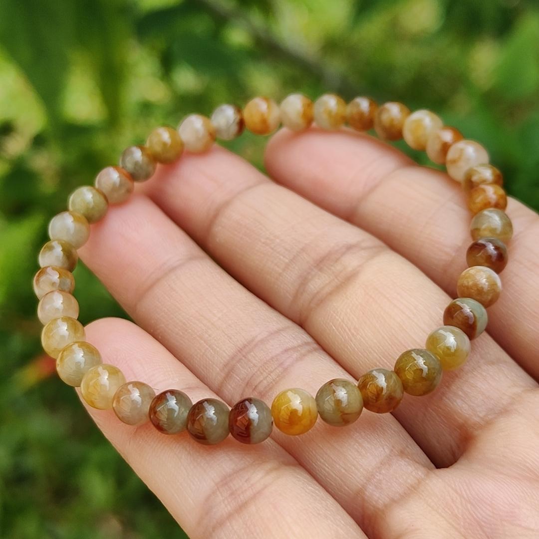 இந்த நேர்த்தியான மற்றும் நல்ல தரமான 5.3மிமீ பனிக்கட்டி மஞ்சள், சிவப்பு, பிரவுன் இயற்கை வகை A Jadeite Jade 36 Beads Bracelet என்பது நீங்கள் தினசரி அணியக்கூடிய ஒரு அசத்தலான நகை அணிகலன் ஆகும். யுனிசெக்ஸ் வடிவமைப்பைக் கொண்டிருப்பதால், இது ஆண்கள் மற்றும் பெண்களுக்கு ஏற்றது.