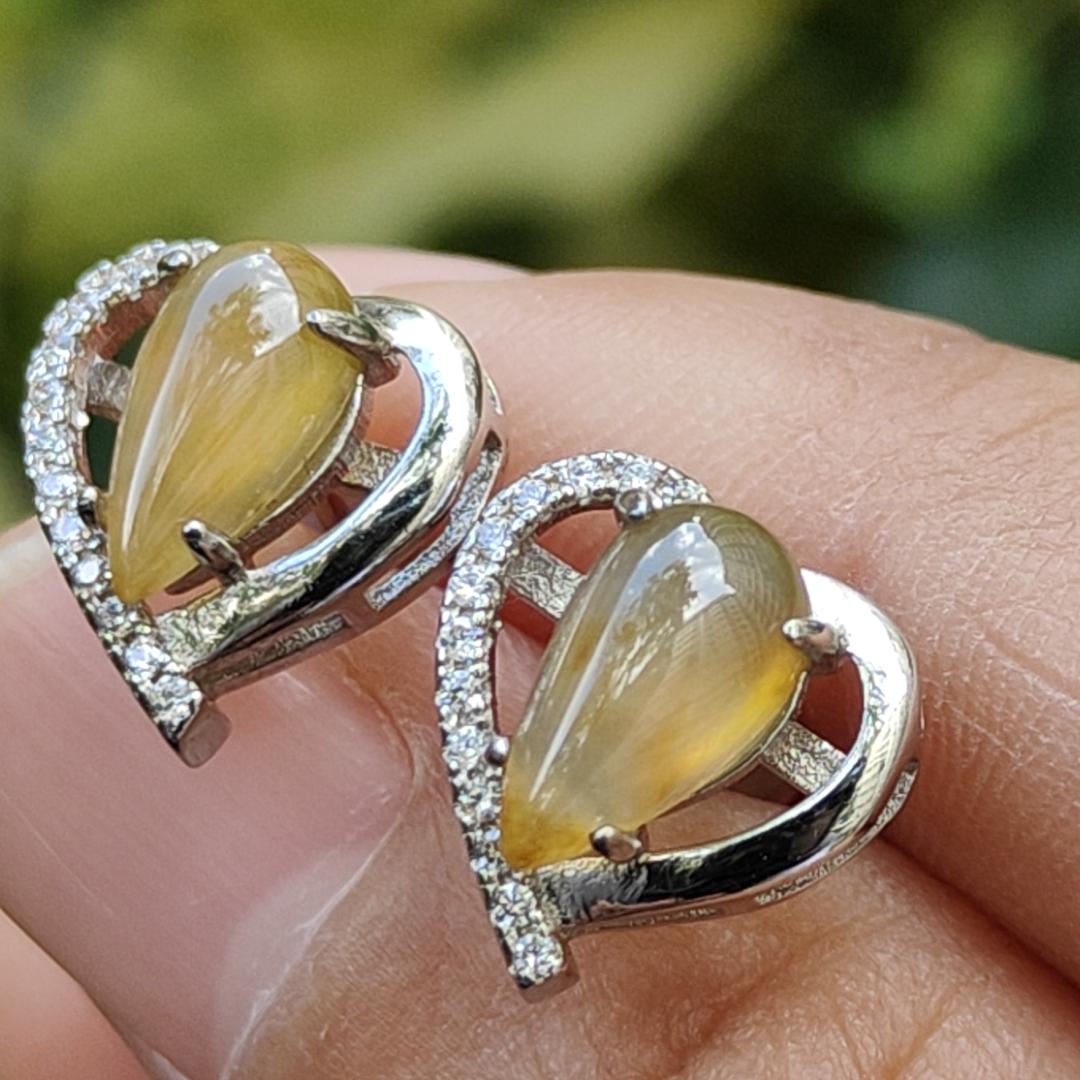 S925 வெள்ளியில் வடிவமைக்கப்பட்ட இந்த அற்புதமான பனிக்கட்டி மஞ்சள் இயற்கை வகை A ஜேட் ஜேட் ஸ்டட் காதணிகள் மூலம் உங்கள் தினசரி பாணியை மேம்படுத்தவும்.