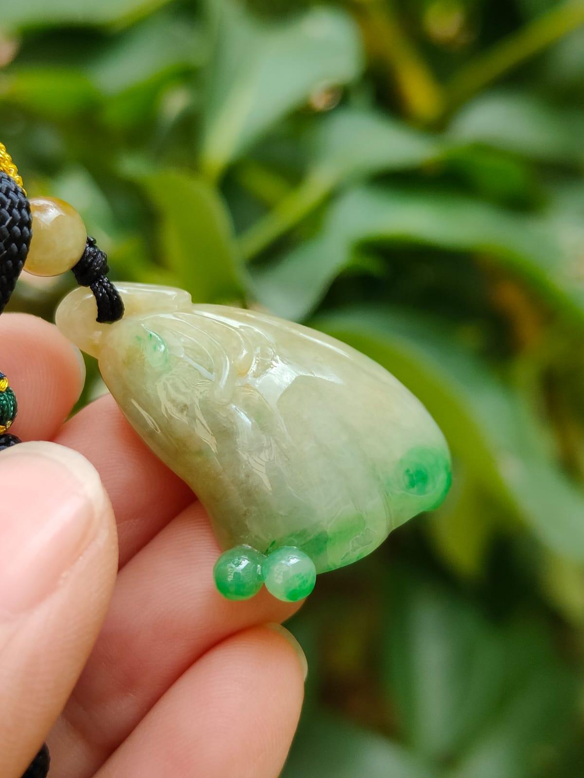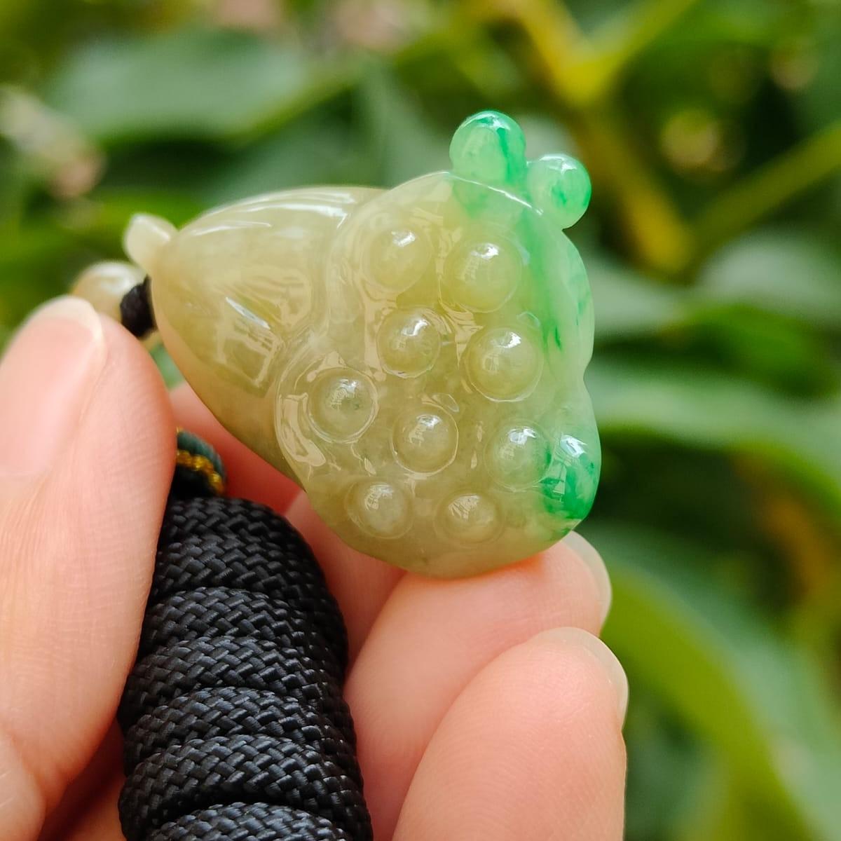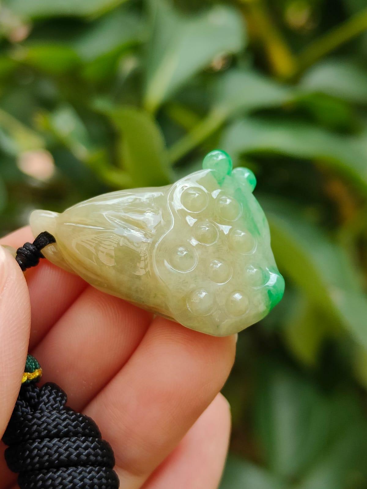 இந்த நேர்த்தியான பதக்க அம்சம் மஞ்சள் மற்றும் பச்சை இயற்கை வகை A Jadeite Jade ஒரு தாமரை விதை வடிவில் வடிவமைக்கப்பட்டு, ஒரு தனித்துவமான மற்றும் நேர்த்தியான வடிவமைப்பை உருவாக்குகிறது.