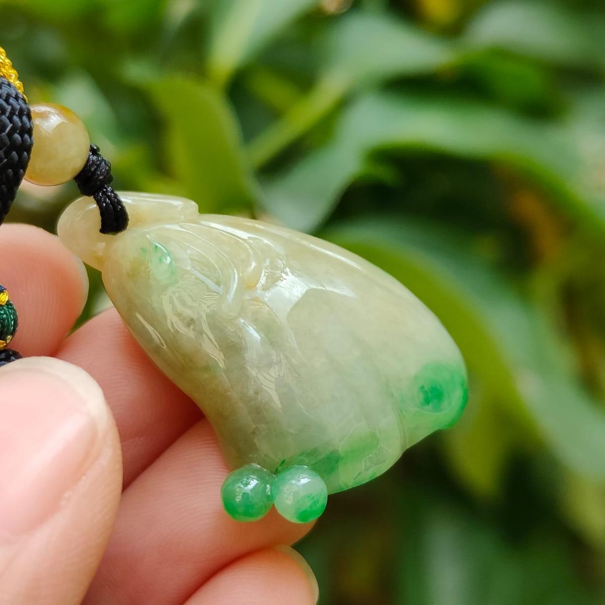 சமீபத்திய வருகை SG விற்பனையாளர் - மஞ்சள் மற்றும் பச்சை இயற்கை வகை A ஜேடைட் ஜேட் தாமரை விதை பதக்கமாக வடிவமைக்கப்பட்டுள்ளது, QIC அங்கீகரிக்கப்பட்ட சான்றிதழ் 14.61 கிராம் எடை கொண்டது, அளவீடு 31.3 * 24.2 * 14.1 மிமீ (பதக்க345)