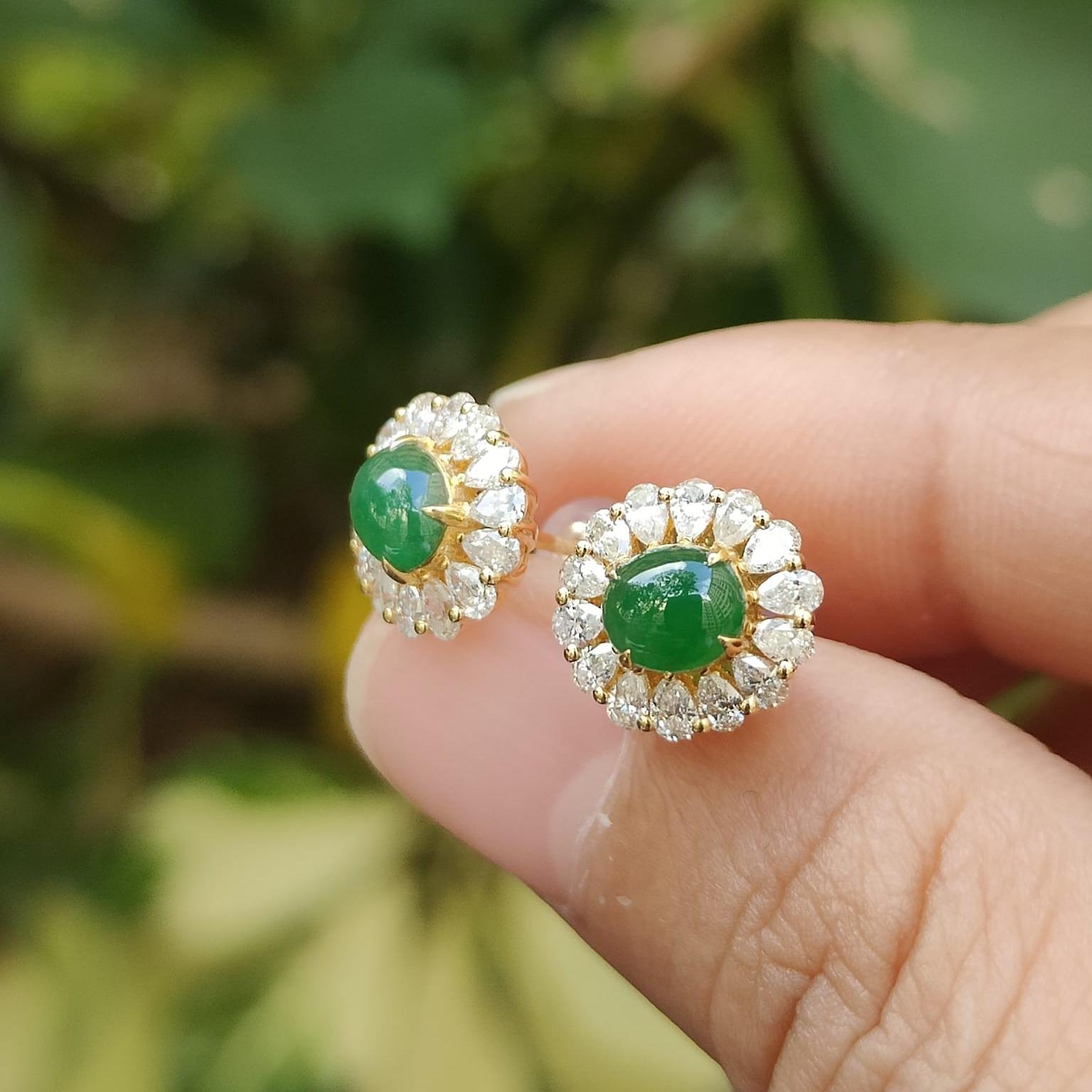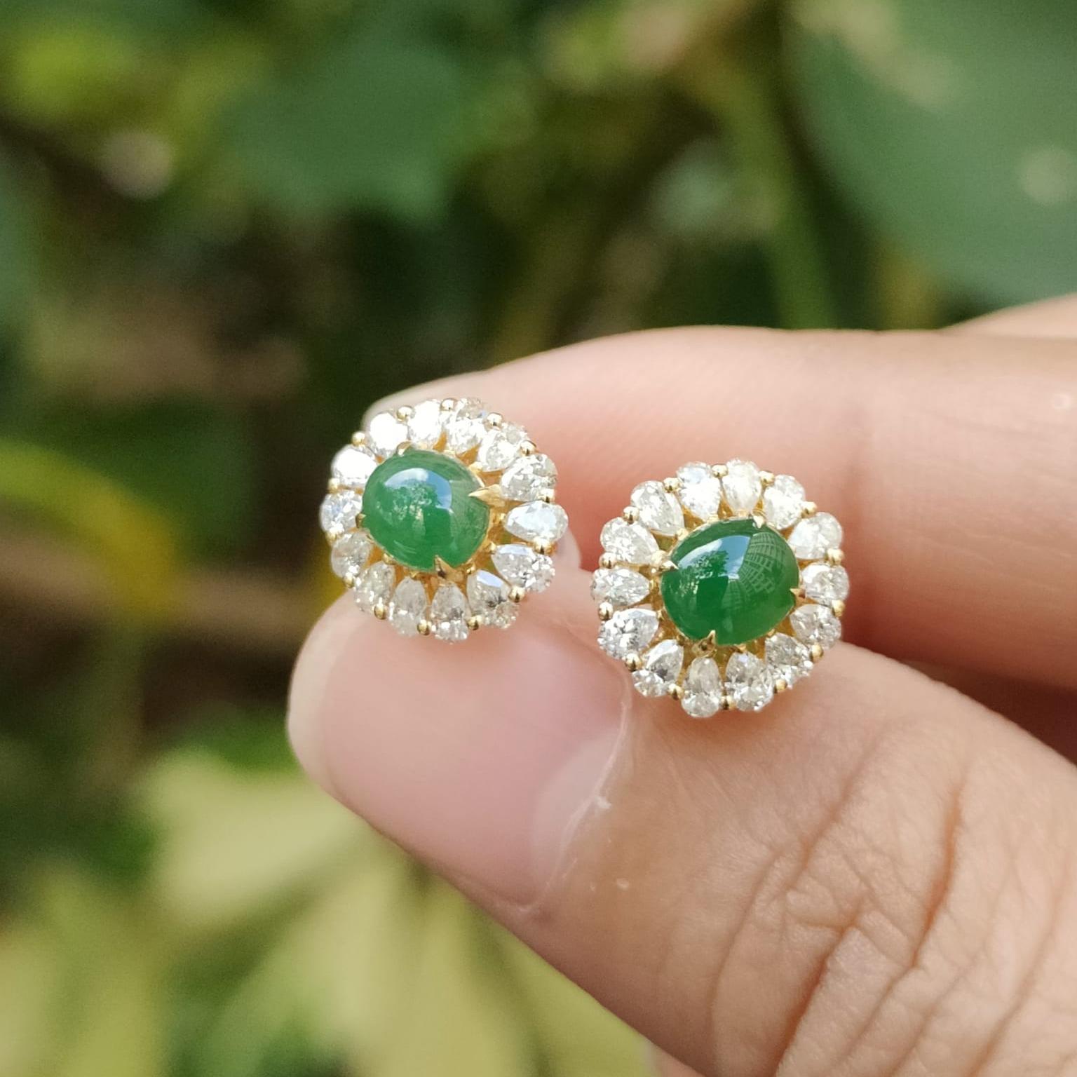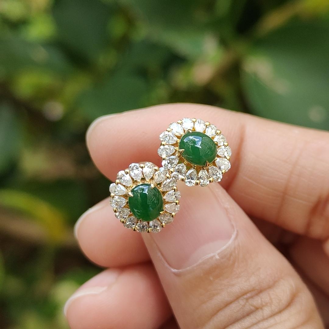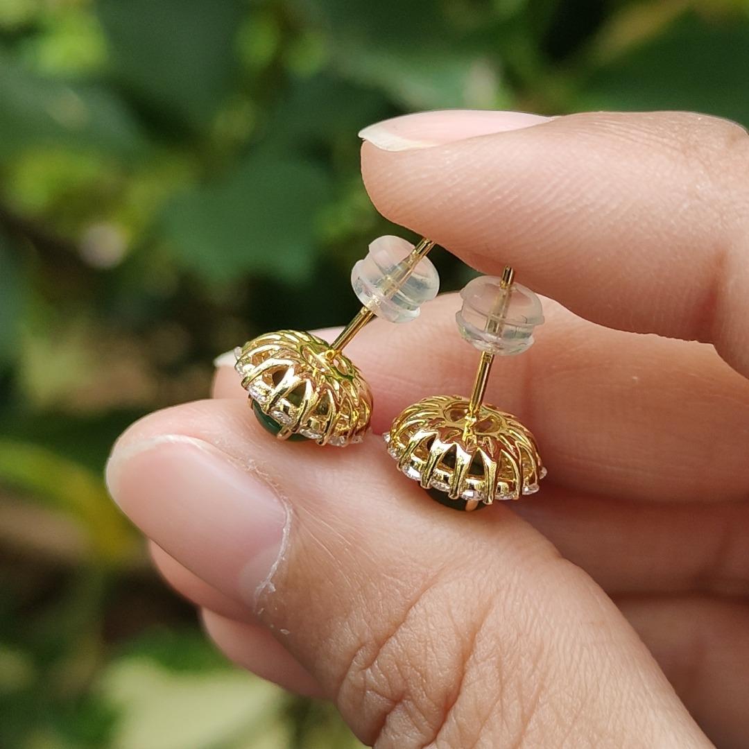எங்களின் சமீபத்திய புதிய வருகையை அறிமுகப்படுத்துகிறோம்: 18k தங்கத்தில் அமைக்கப்பட்ட க்ரீன் கபோகான்ஸ் ஸ்டட் காதணிகளின் பிரீமியம் உயர்தர ஜோடி, இயற்கை வகை A ஜேடைட் ஜேட்.