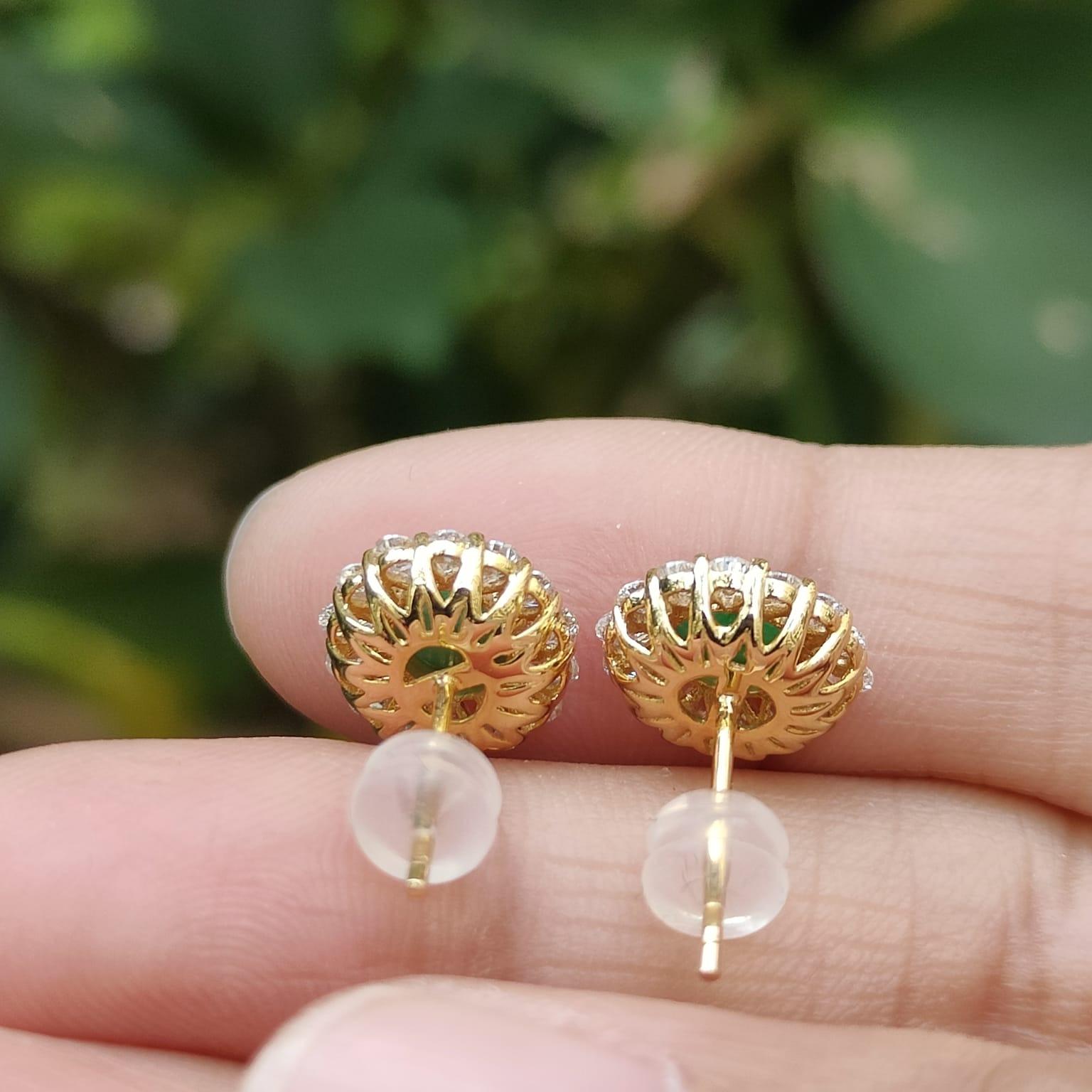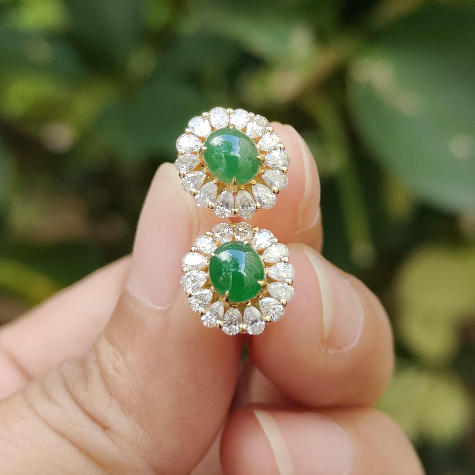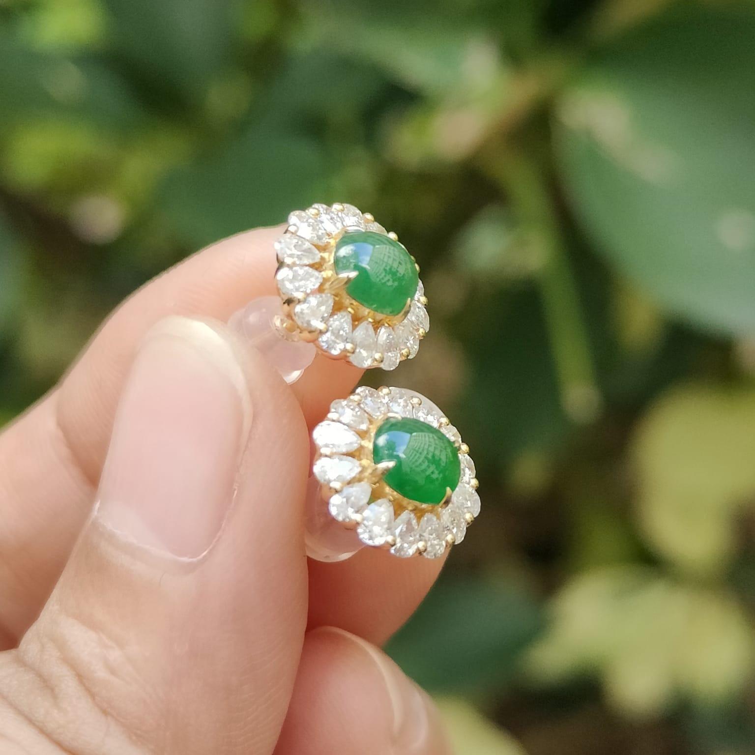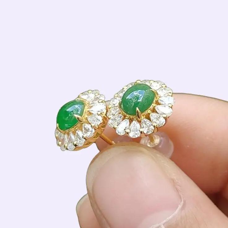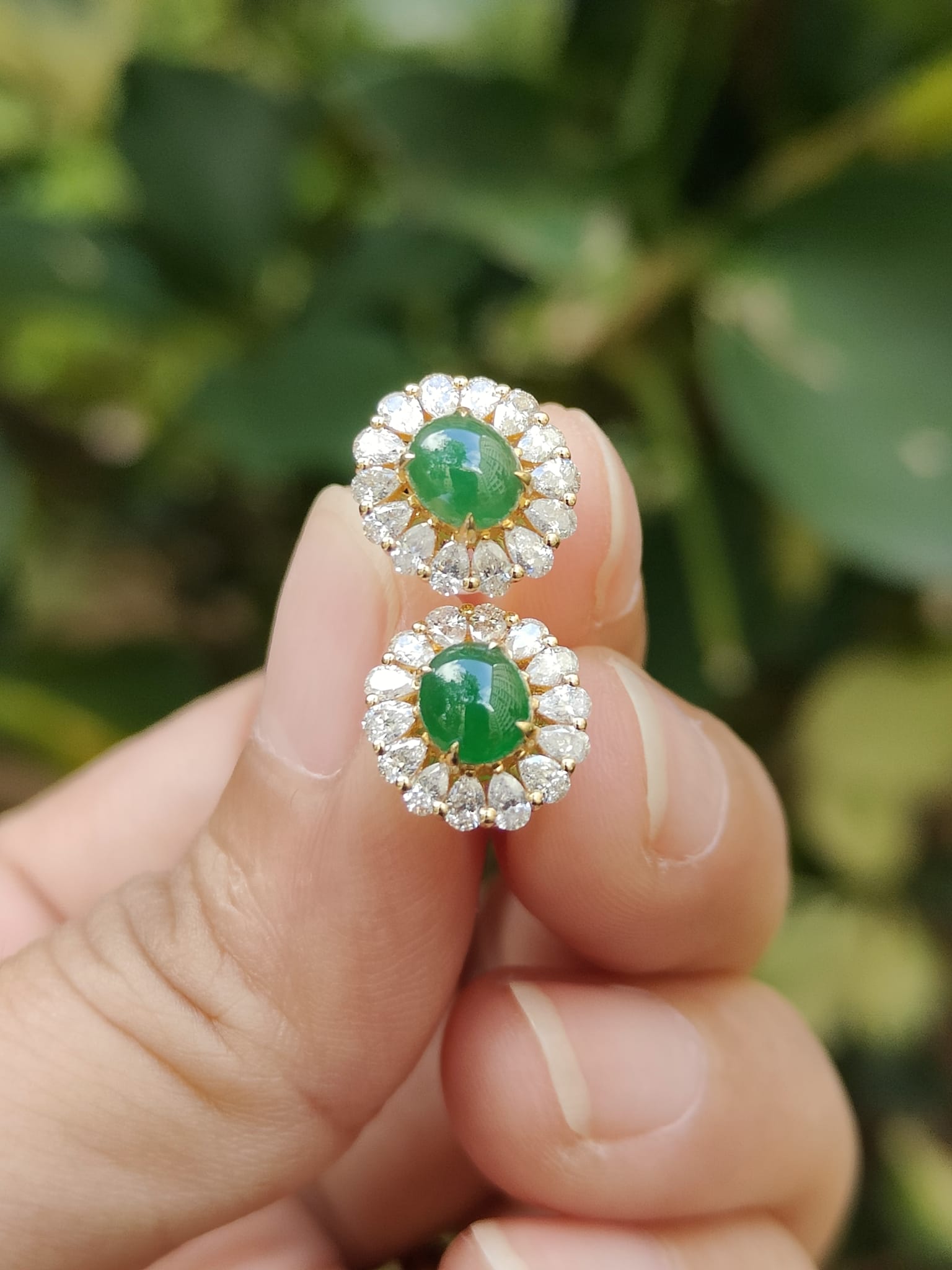 எங்களின் சமீபத்திய புதிய வருகையை அறிமுகப்படுத்துகிறோம்: 18k தங்கத்தில் அமைக்கப்பட்ட க்ரீன் கபோகான்ஸ் ஸ்டட் காதணிகளின் பிரீமியம் உயர்தர ஜோடி, இயற்கை வகை A ஜேடைட் ஜேட்.