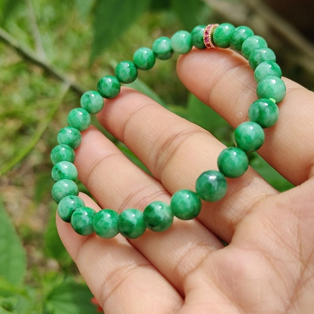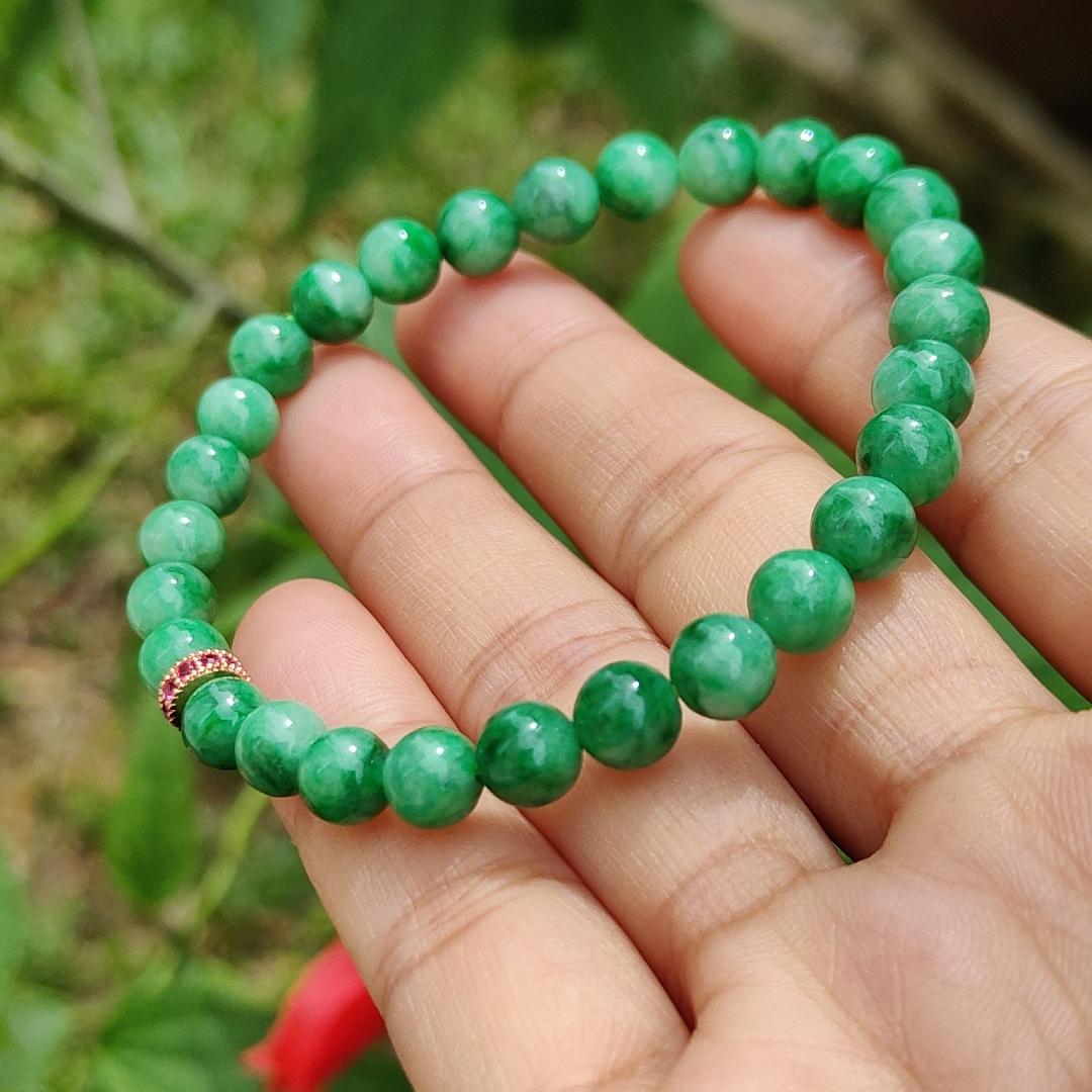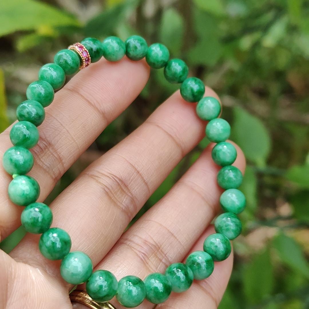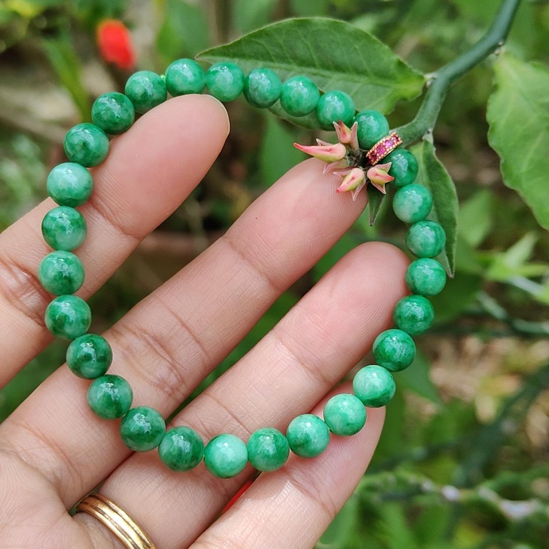 இயற்கையான வகை A ஜேடைட்டால் செய்யப்பட்ட இந்த பிரீமியம் தரமான காரமான-பச்சை வளையல் 6.5 மிமீ அளவீட்டு அளவுடன் 28 அற்புதமான பச்சை மணிகளைக் கொண்டுள்ளது. 12.75 கிராம் எடையுள்ள இந்த வளையல் வேலைக்காகவோ அல்லது கூட்டமாக இருந்தாலும் சரி, தினசரி அணிவதற்கு ஏற்ற துணைப் பொருளாகும்.