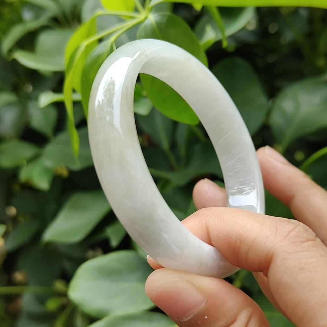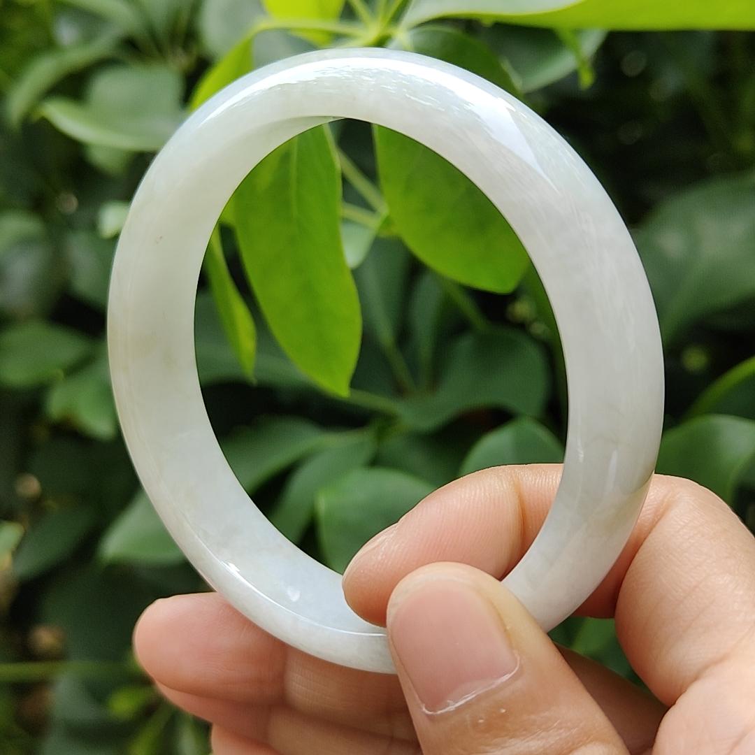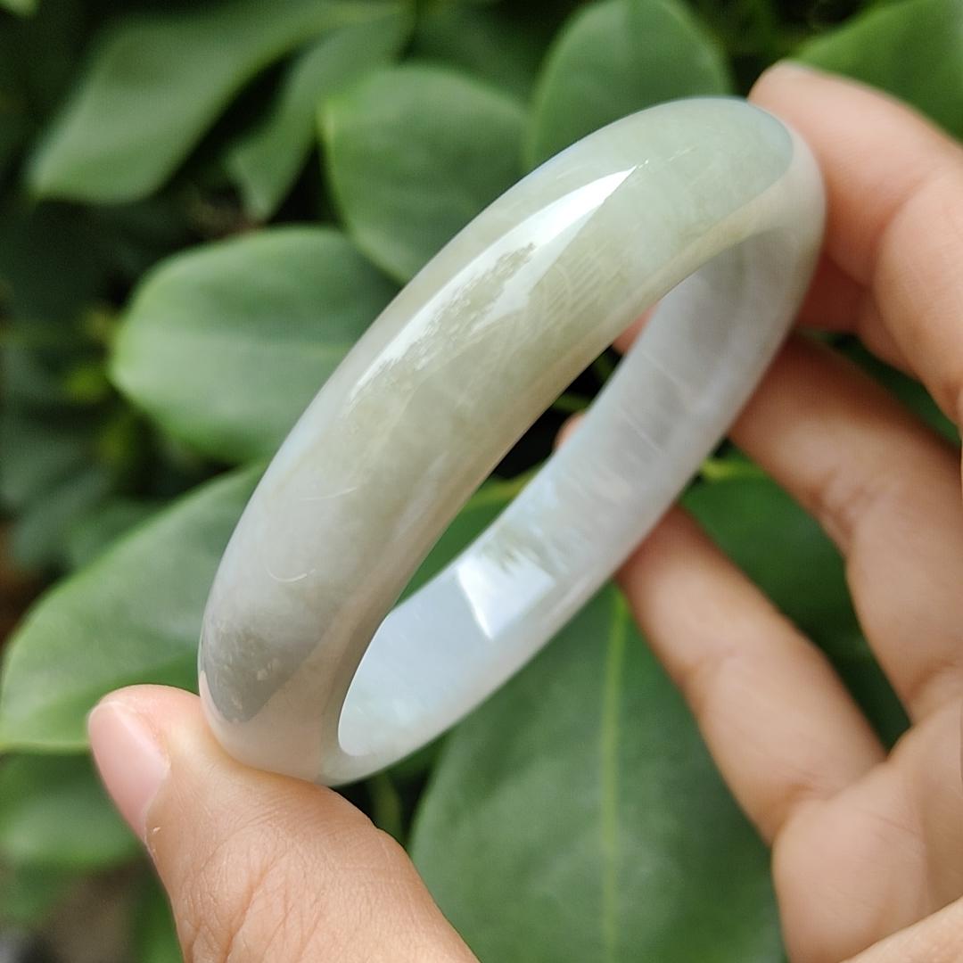 சிங்கப்பூர் புதிய வருகை 57.5 மிமீ அமைதி வளையல் இயற்கை வகை A ஜேடைட் ஜேட் நகை சான்றிதழ் எடை 52.21 கிராம், அகலம்: 13.1 * தடிமன்: 7.1 மிமீ (வளையல்18)