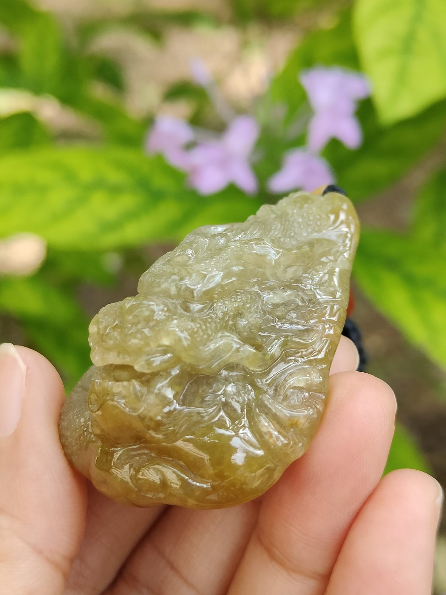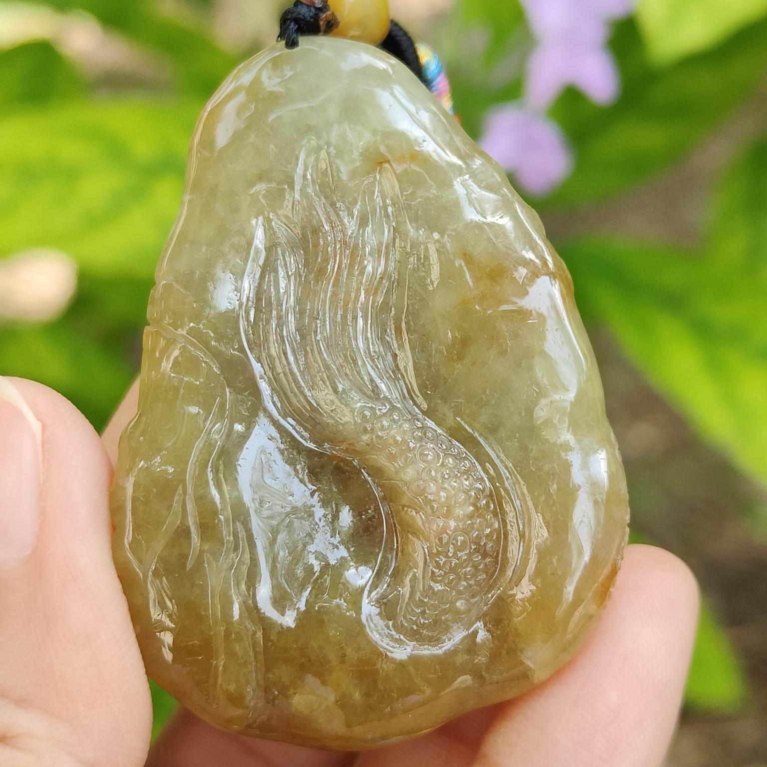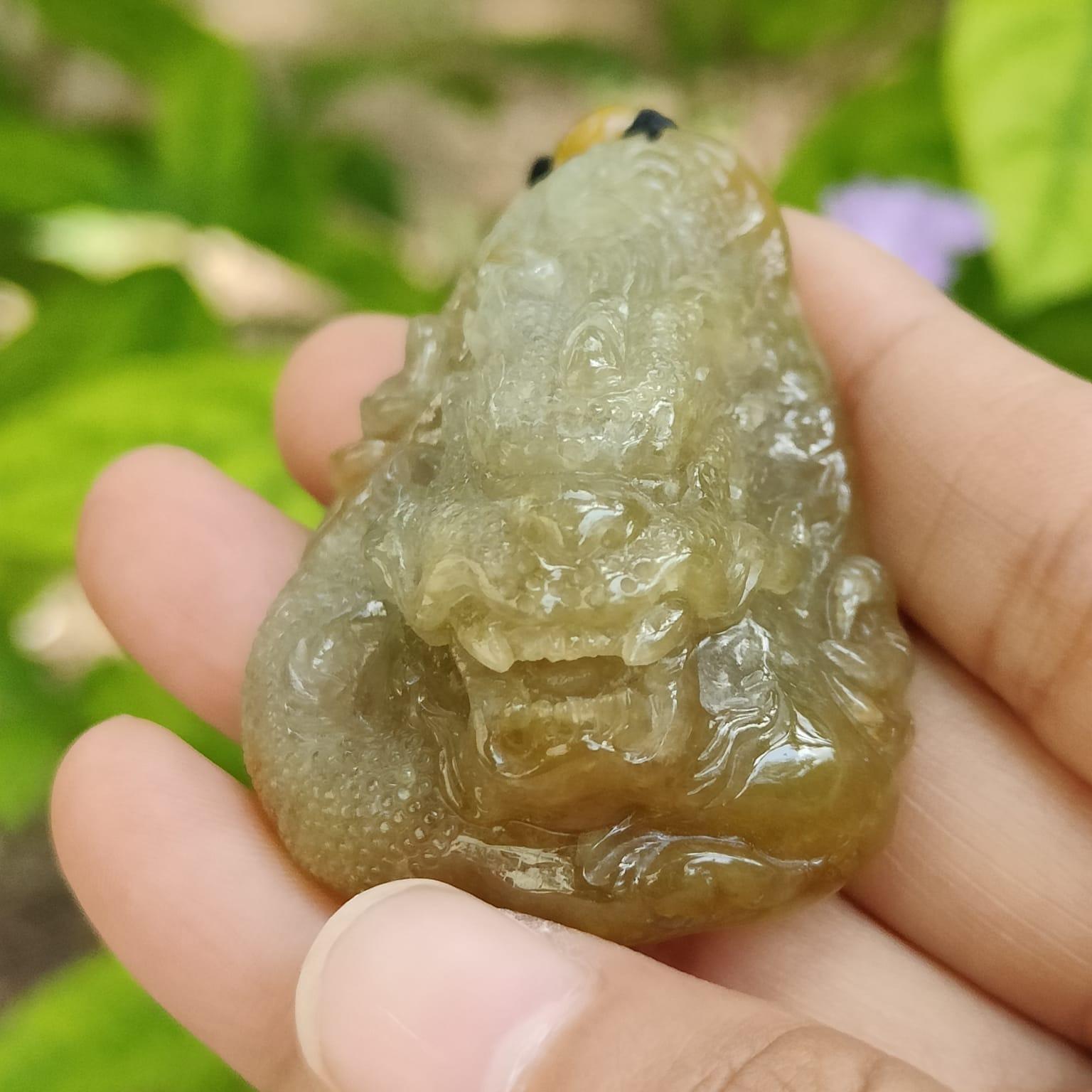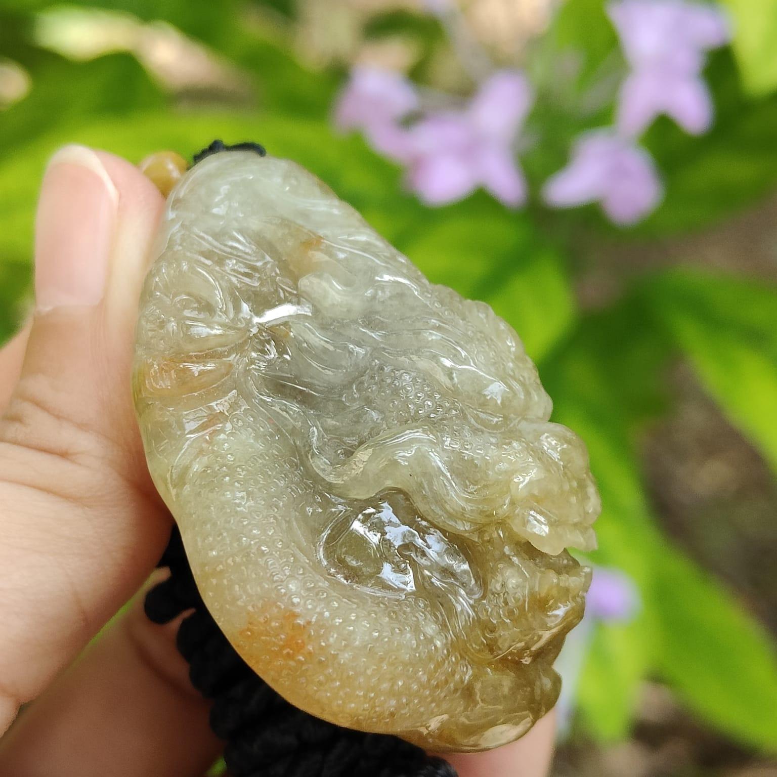 จี้มังกรอันน่าทึ่งนี้ทำจากหยกธรรมชาติชนิด A คุณภาพสูงจากเมียนมาร์ จี้มีน้ำหนัก 52.19 กรัม และมีขนาด 52.8 * 36.9 * 22.5 มม.