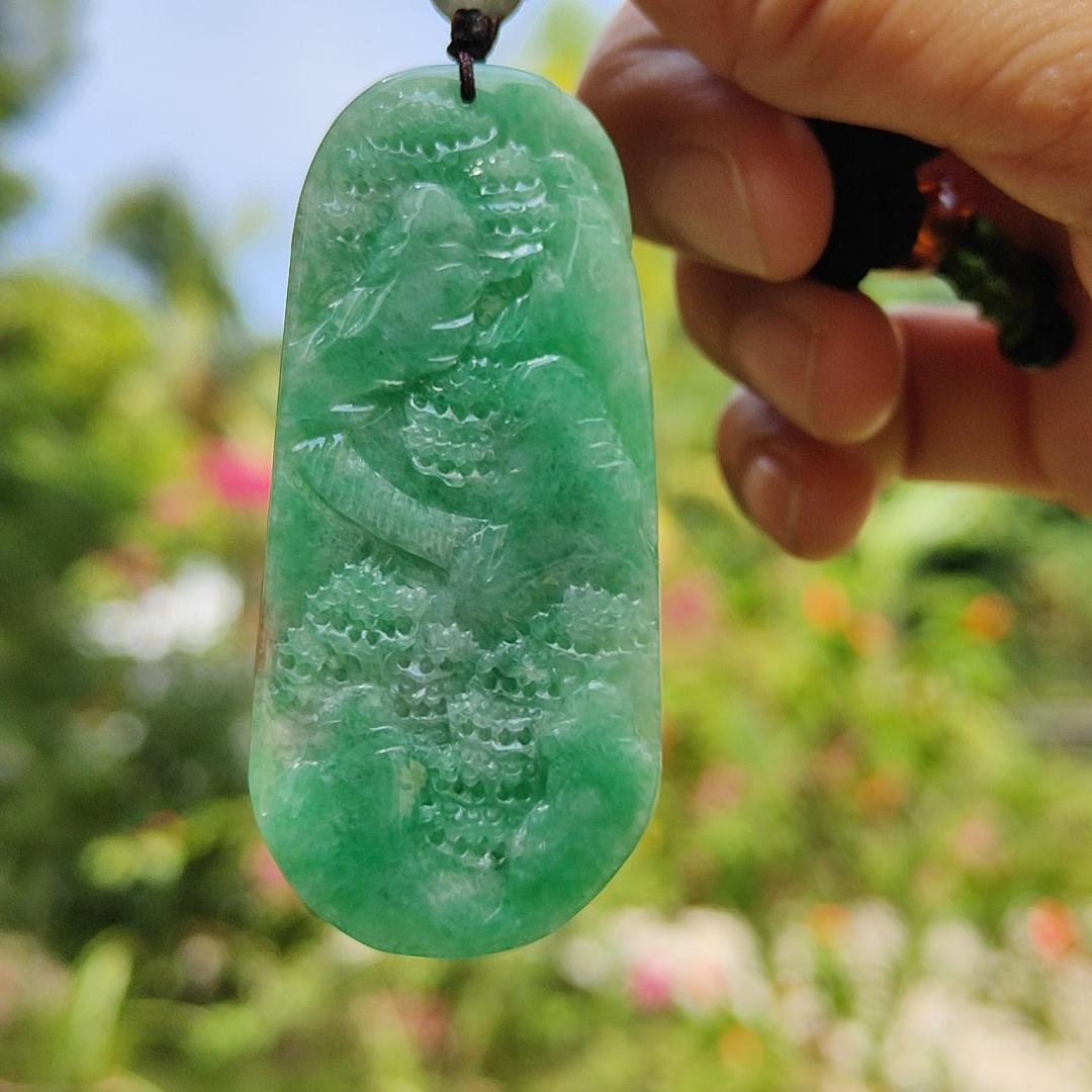 Mặt dây chuyền Unisex này không yêu cầu loại bảo hành vì chất lượng của nó tự nói lên tất cả! Hãy thêm Mặt dây chuyền Jadeite tự nhiên trong mờ màu xanh lá cây loại A được chạm khắc đẹp mắt vào phong cảnh này vào bộ sưu tập của bạn ngay hôm nay!
