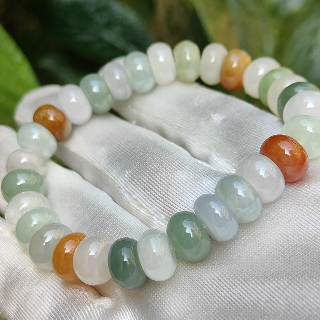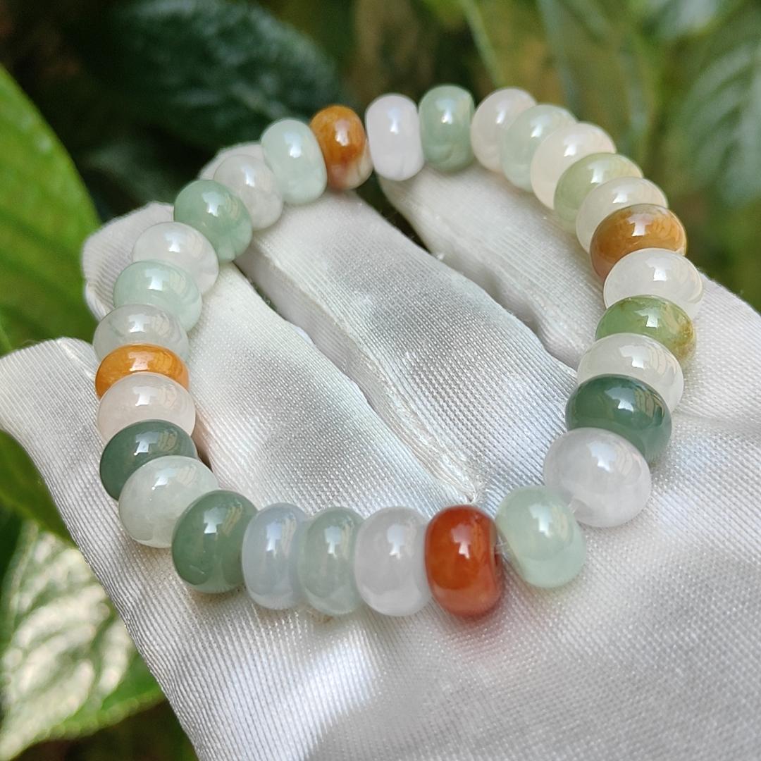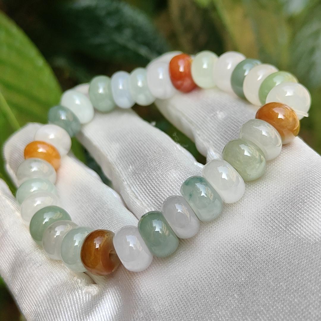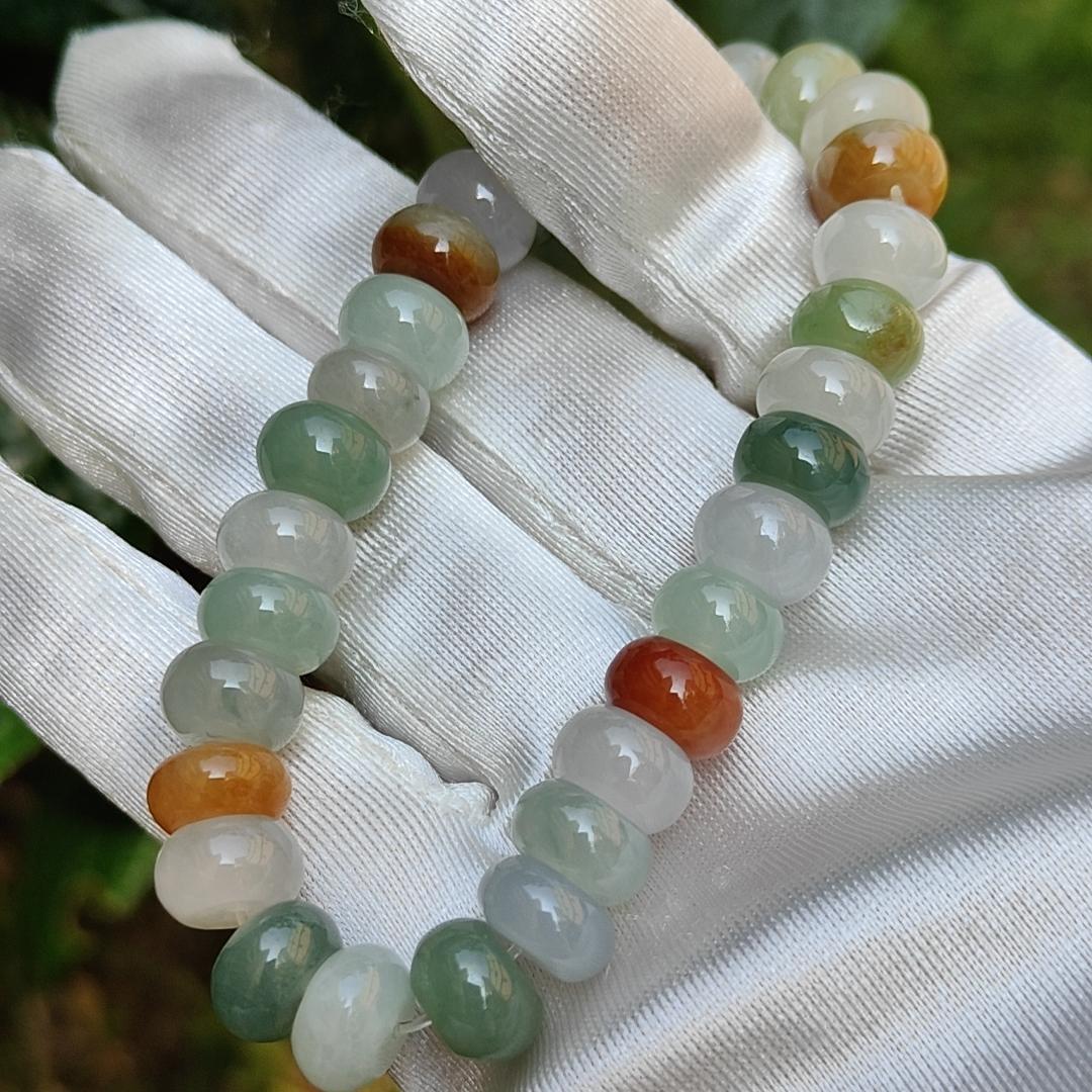 Chiếc vòng tay tuyệt đẹp này có 30 hạt ngọc bích tự nhiên loại A nhiều màu, mỗi hạt có kích thước 10mm. Với tổng trọng lượng 35,47 gram, chiếc vòng tay này (bracelet17) đi kèm với giấy chứng nhận xác thực.