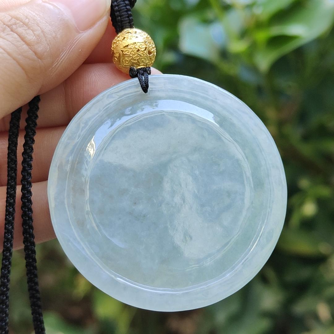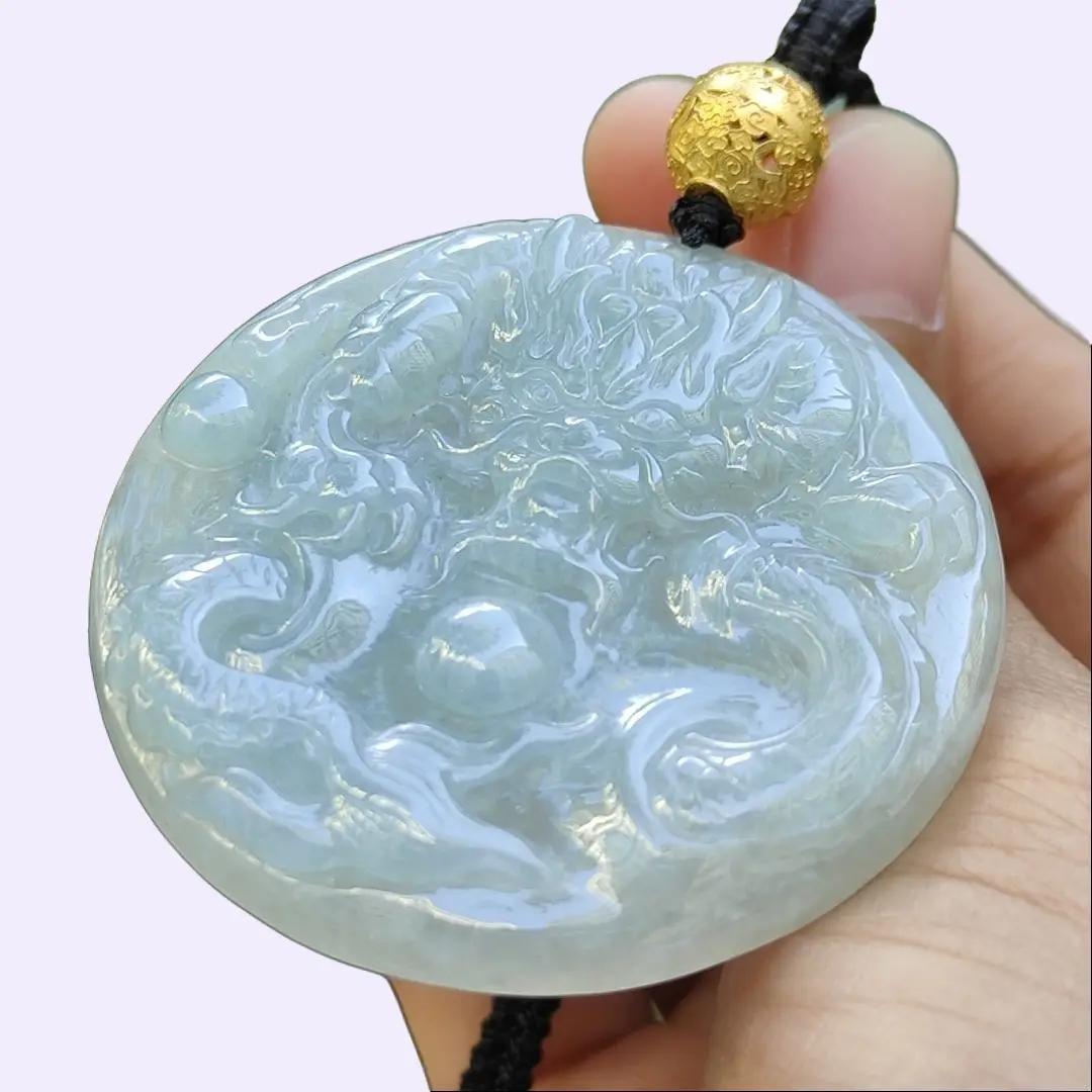 Mặt dây chuyền rồng hình tròn tự nhiên loại A Jadeite Jade được thêm một hạt 18k, giấy chứng nhận nặng 27,7 gram, kích thước 50 * 50 * 6,1 mm (18kp90)