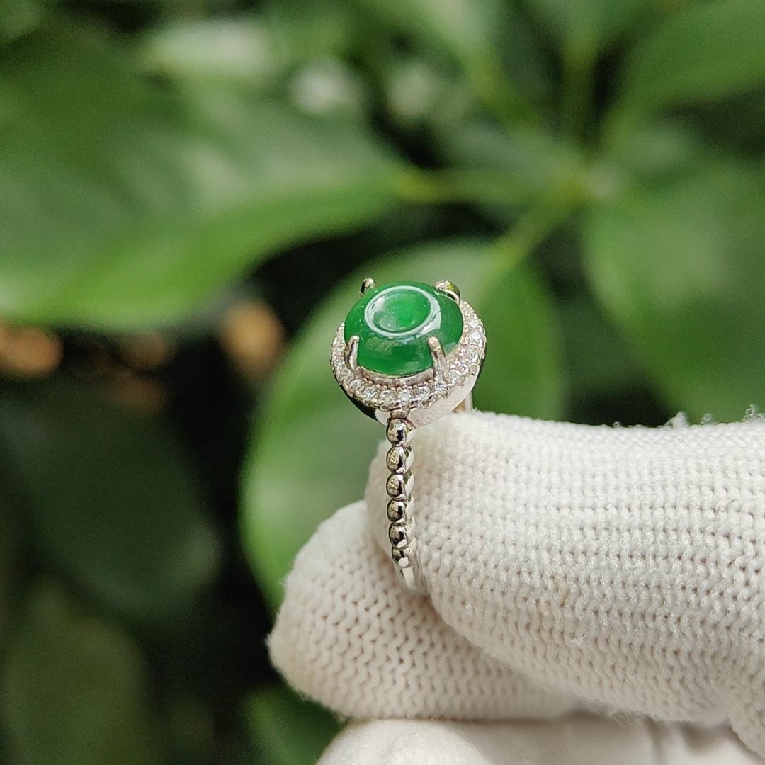 此款 Sg 本地新品采用令人惊叹且独特的可调节免费尺寸 S925 戒指,以甜甜圈形状天然 A 型绿色翡翠制成。