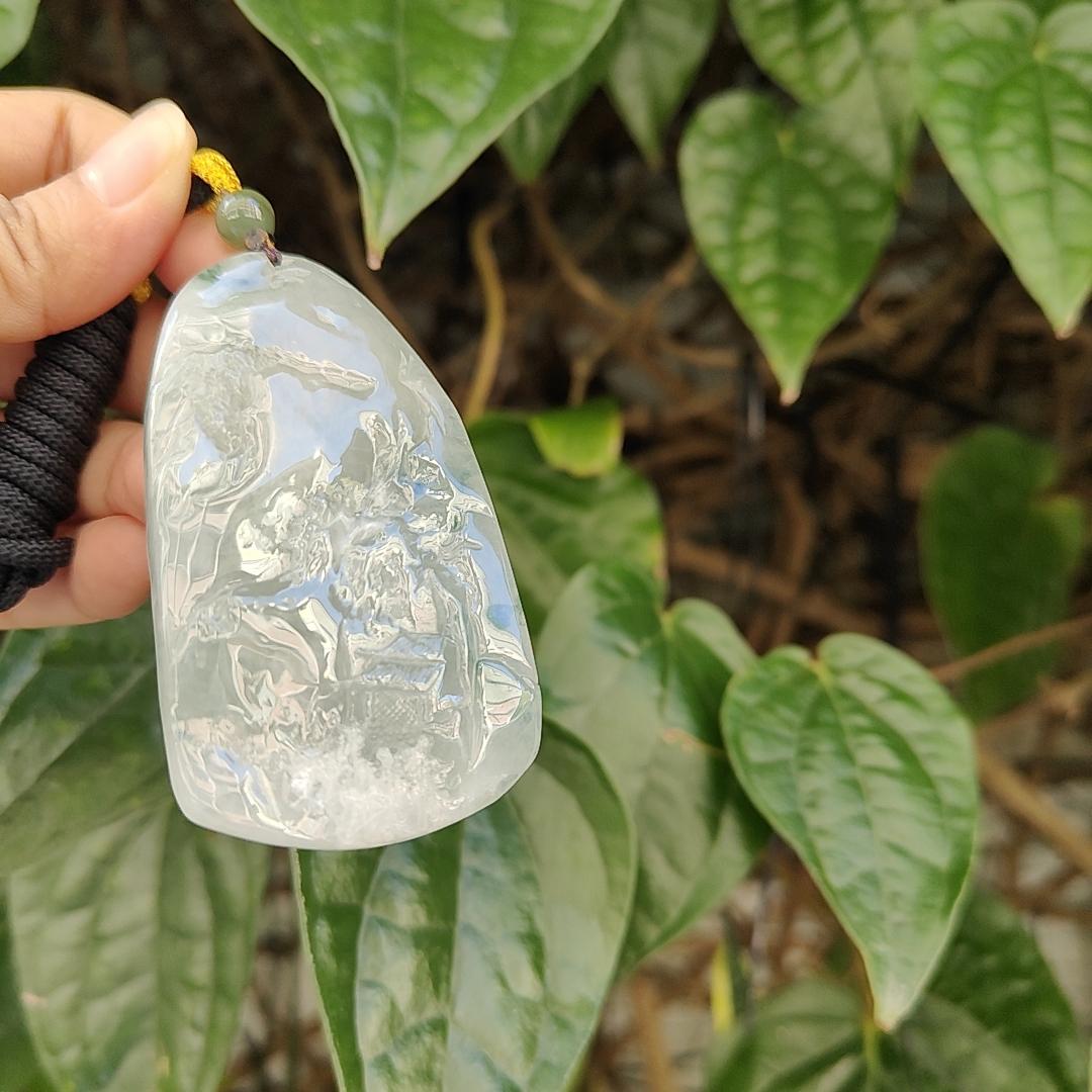 提升您的珠宝收藏品,每次佩戴这款雕刻成风景的天然老矿 A 型翡翠吊坠时,都会引人注目!
